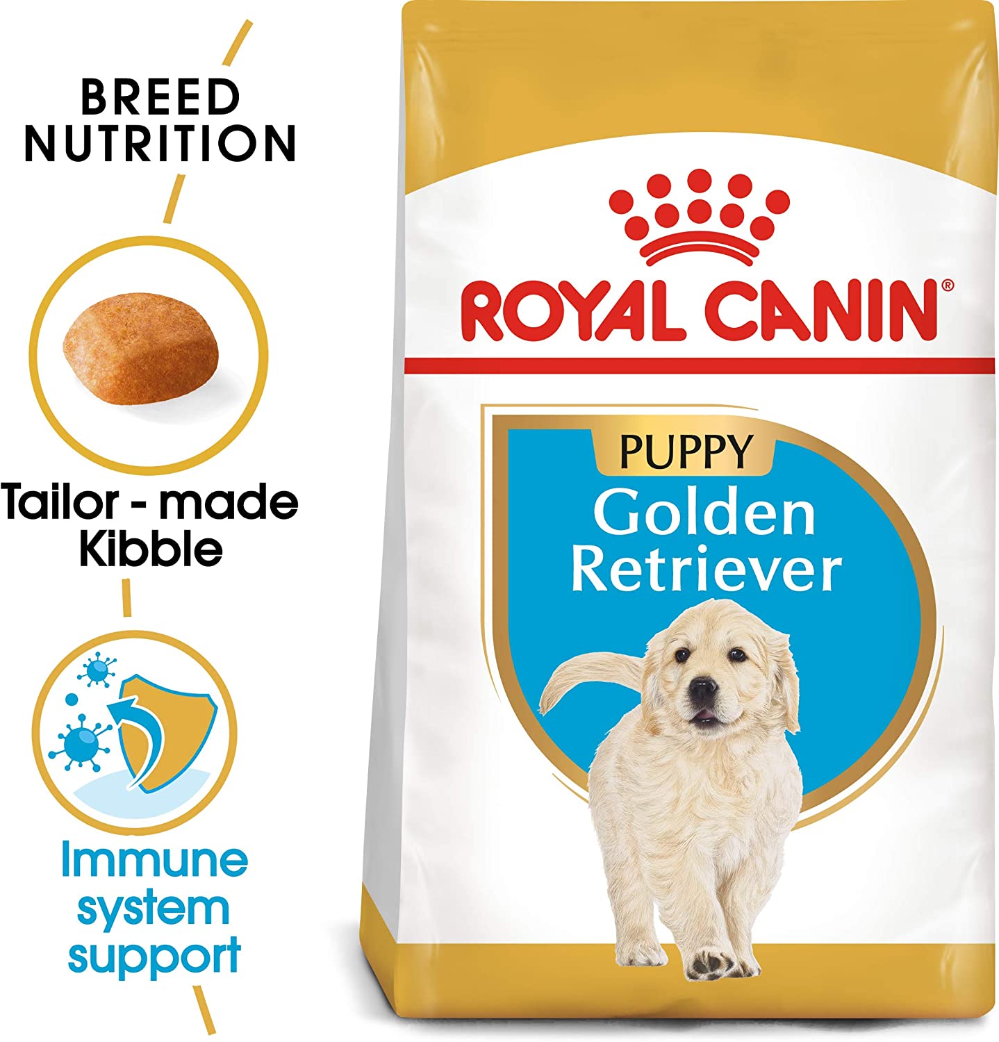 يتناسب شكل وحجم وملمس وتركيبة الطعام مع جرو Golden Retriever.