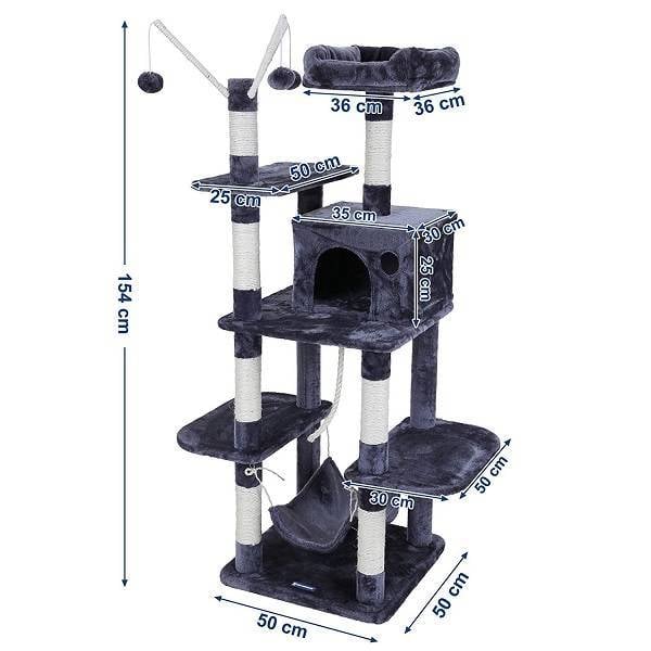 شجرة خدش القطط، باللون الأزرق والأبيض، 154 سم