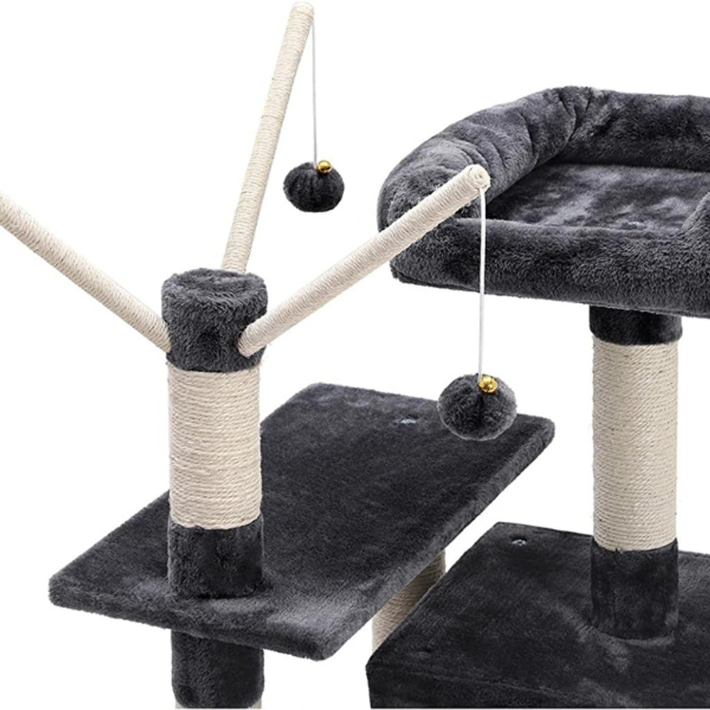 - 3 كرات محشوة، 1 خيط، 1 بيت قطة، 1 أرجوحة، 4 أماكن للراحة