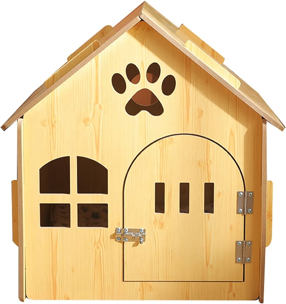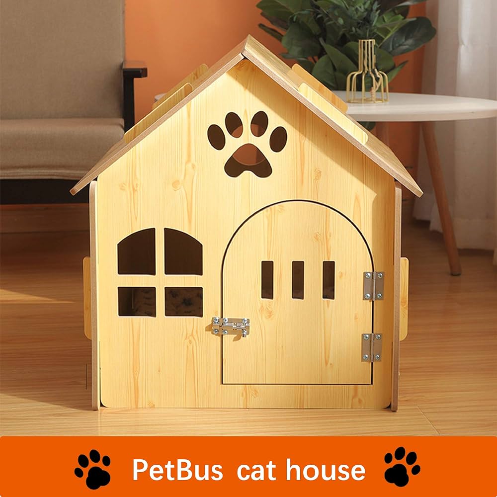 بيت قطط PetBus للقطط الداخلية مع حشوة وسرير كهف للكلاب الصغيرة وأقفاص خشبية للحيوانات الأليفة الصغيرة والأرانب مع باب ونوافذ سهلة التجميع