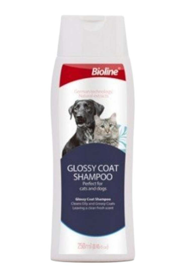 شامپۆی بایۆلاین گلۆسی کۆت بە قووڵی پێست و پەڕەکانی ئاژەڵە ماڵیەکان پاک دەکاتەوە و ڕێکوپێکی دەکات، بەمەش تەندروست و بۆنێکی خاوێن و تازە و خاوێنی بەجێدەهێڵێت.