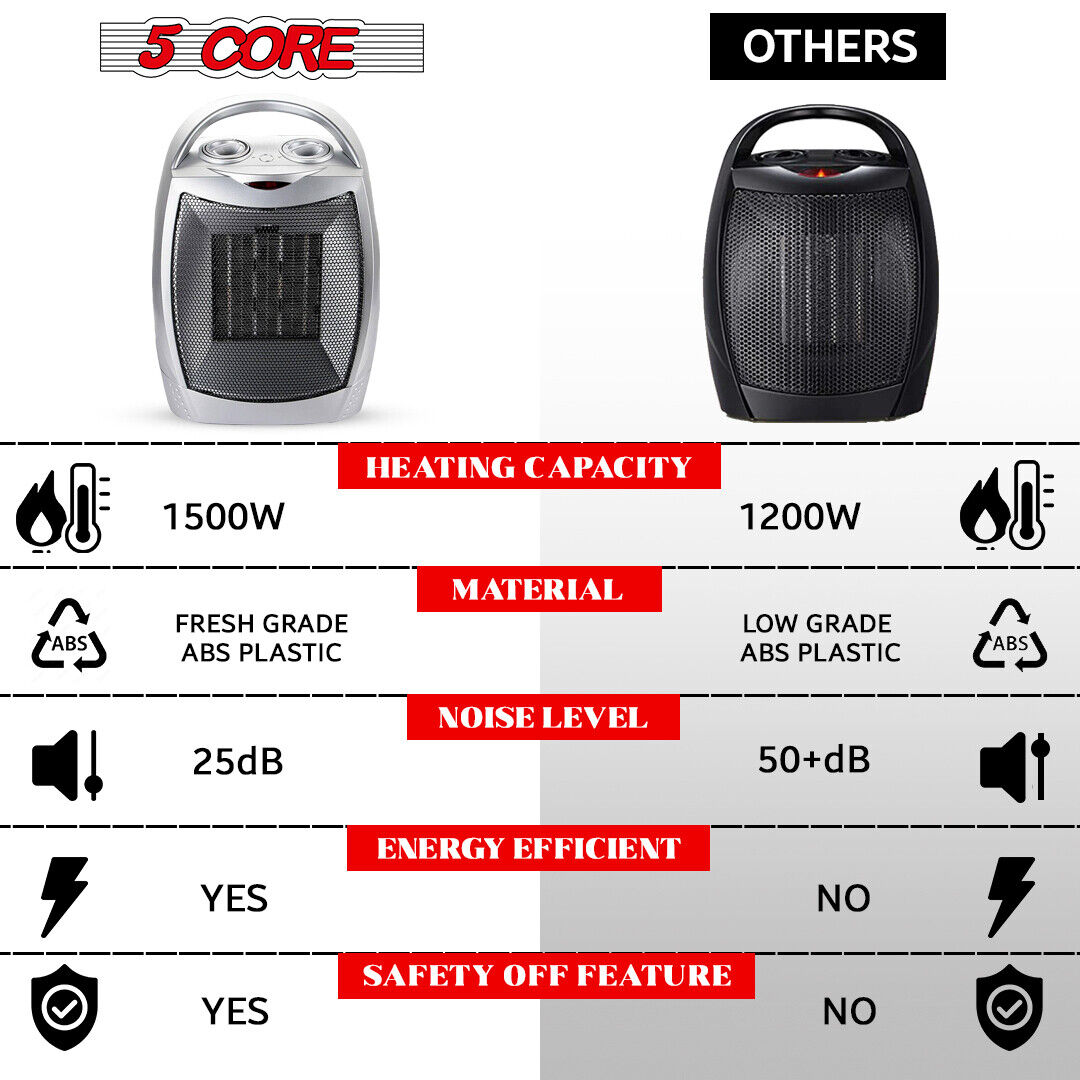 5 Core Electric Space Heater Portable for Indoor Use 1500W Safe Quiet Ceramic