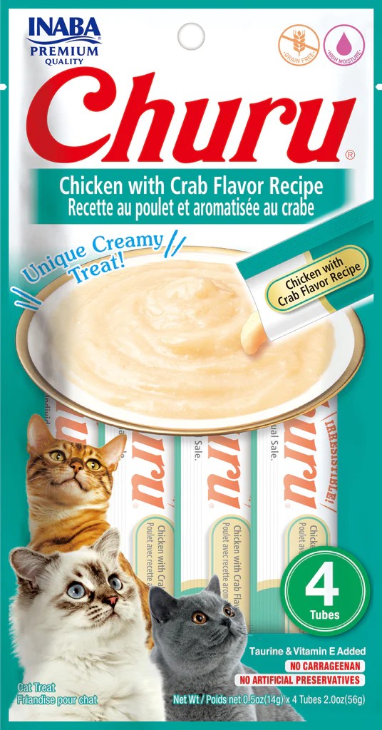 These lickable treats for cats are made with 100% pure and natural wild tuna or farm-raised chicken! Available in nine delectable varieties, Churu® Purées are high in moisture felines need for health. Simply tear open a tube and give it a little squeeze to feed these grain-free, preservative-free treats by hand. You can also pour them into a bowl or use as a tasty topper on wet or dry food.