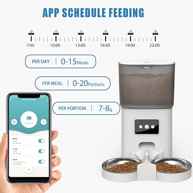 - مغذيات القطط الأوتوماتيكية بتقنية WiFi】تدعم المغذية الأوتوماتيكية تطبيقًا لأنظمة IOS وAndroid. يجب أن تكون شبكة WiFi المنزلية الخاصة بك بتردد 2.4 جيجاهرتز حتى تعمل وحدة تغذية الحيوانات الأليفة. قم بتنزيل تطبيق Pet Zero وتثبيته على هاتفك المحمول. يمكنك وضع خطة تغذية من خلال هذا التطبيق وإطعام حيوانك الأليف في أي وقت وفي أي مكان على هاتفك الذكي. يمكنك أيضًا التحقق من سجل التغذية على التطبيق للتأكد من أن وحدة تغذية القطط الأوتوماتيكية تعمل كما هو مخطط لها.