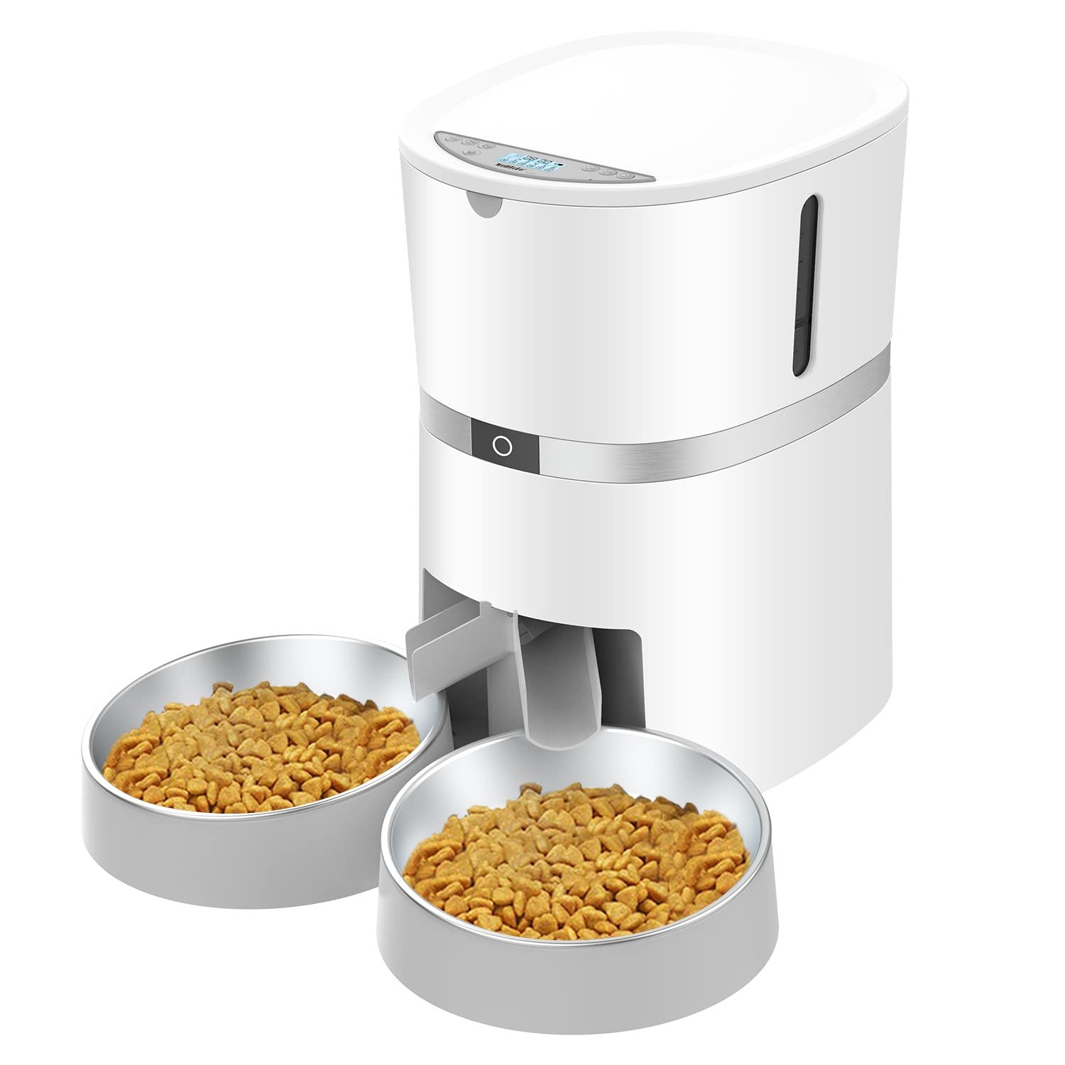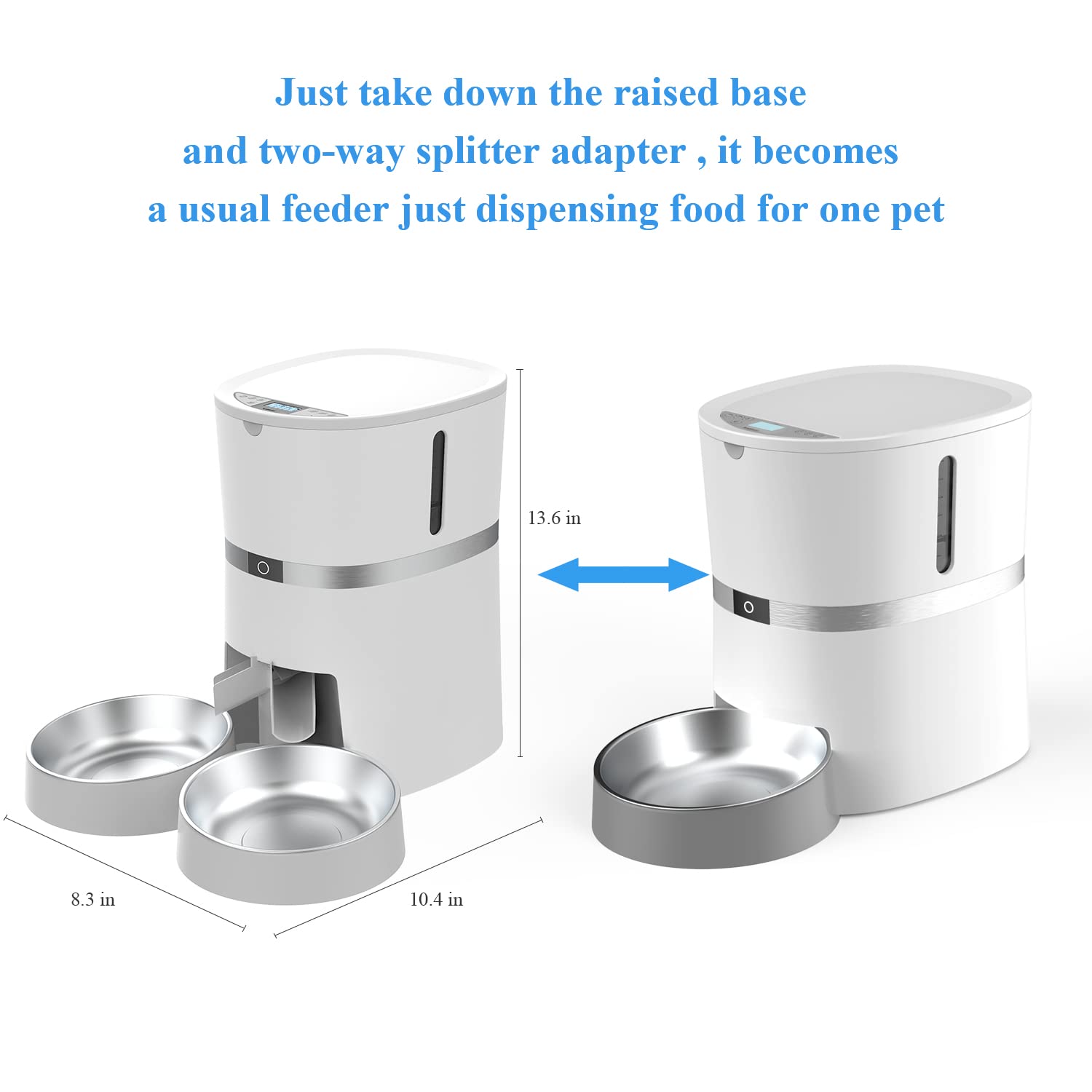 يأتي موزع طعام القطط مع موزع ثنائي الاتجاه ووعاءين من الفولاذ المقاوم للصدأ، ويمكنه ببساطة تقسيم كمية الطعام إلى نصفين وتوزيعها في وعائين منفصلين لإطعام حيوانين أليفين في نفس الوقت، مما يجعل وقت التغذية سهلاً ويوفر المساحة.