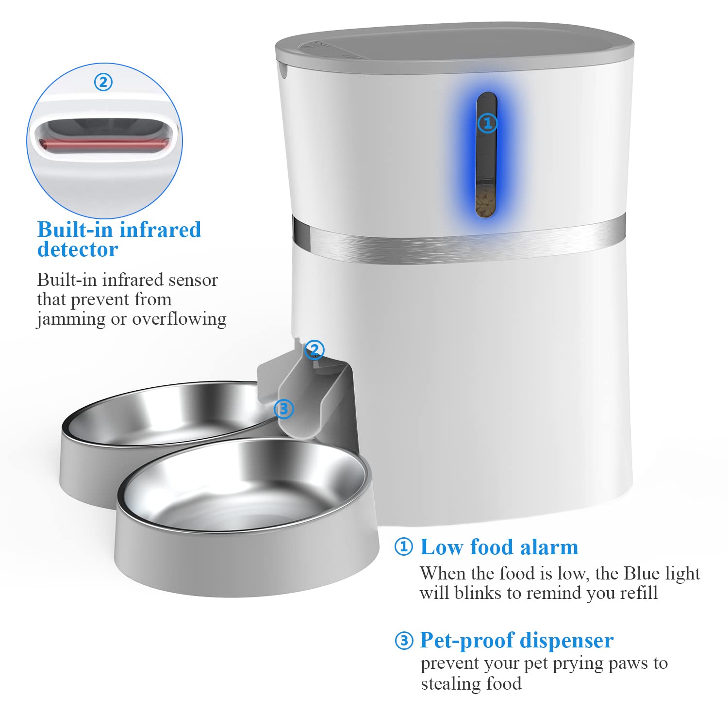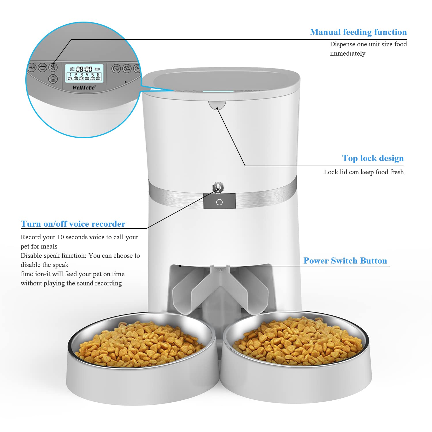 يمكن حل جميع المشكلات باستخدام وحدة التغذية الأوتوماتيكية للحيوانات الأليفة WellToBe المصممة خصيصًا لحيوانين أليفين. وحدة التغذية الأوتوماتيكية للحيوانات الأليفة WellToBe 2 في 1 هي خيار رائع لمن لديهم حيوانات أليفة متعددة. يمكن لموزع طعام القطط الأوتوماتيكي إطعام حيواناتك الأليفة المتعددة في نفس الوقت.
