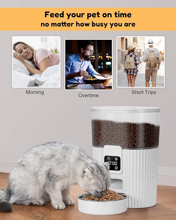 - وحدة تغذية الحيوانات الأليفة الأوتوماتيكية】جدولة وجبات أكثر صحة لطفلك الصغير. يمكن لحيوانك الأليف الحصول على الكمية المناسبة من الطعام في الوقت المحدد كل يوم من خلال وحدة تغذية الحيوانات الأليفة الأوتوماتيكية. وحدة تغذية القطط الأوتوماتيكية هي مساعد جيد لرعاية قطتك/كلبك عندما تكون مشغولاً بأعمال النوم أو رحلة! لا مزيد من مكالمات الاستيقاظ قبل الفجر، أو القلق المفرط عند العمل الإضافي في الليل والسفر. وحدات تغذية القطط الأوتوماتيكية وحدة تغذية الكلاب الأوتوماتيكية موزع طعام القطط وحدة تغذية الحيوانات الأليفة الأوتوماتيكية مع مؤقت وحدات تغذية القطط للقطط الداخلية.