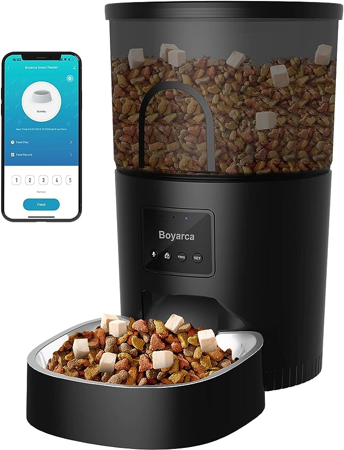 وحدة التغذية الأوتوماتيكية Boyarca wifi هي جيل متطور حل مشكلة صعوبة اتصال wifi ومشاكل عدم الاتصال بالإنترنت. من السهل جدًا الاتصال بشبكة Wi-Fi 2.4 جيجا هرتز (لا تدعم شبكة Wi-Fi 5G). تتيح لك وحدة التغذية الأوتوماتيكية للقطط برمجة وجبات حيوانك الأليف ومراقبتها بحرية باستخدام تطبيق "Smart Life" "TuyaSmart". يمكنك ضبط وحدة التغذية الأوتوماتيكية للحيوانات الأليفة لتغذية ما يصل إلى 10 وجبات في اليوم مع 1-12 حصة لكل وجبة. التطبيق مجاني، ويمكنه تسجيل التغذية وإضافة أجهزة متعددة ومشاركتها مع الأصدقاء.