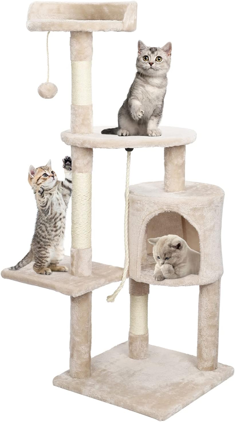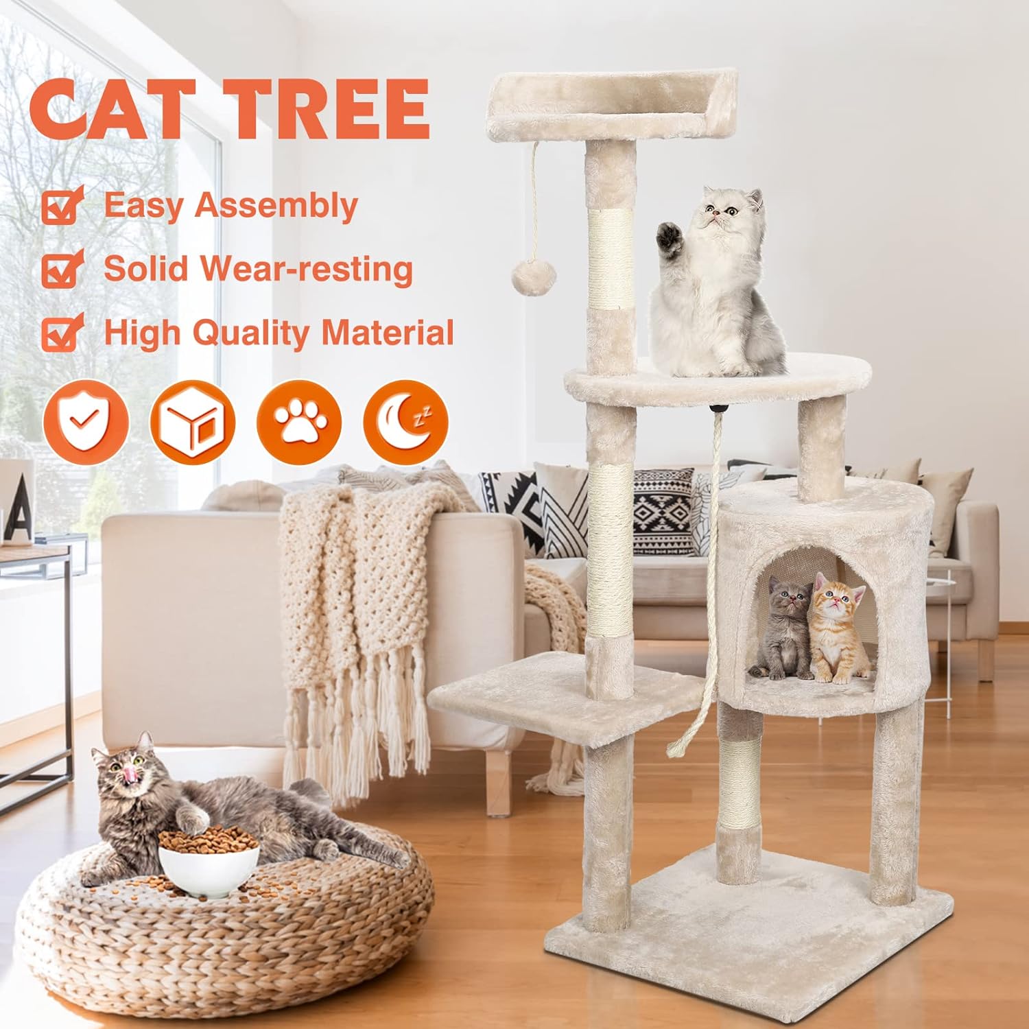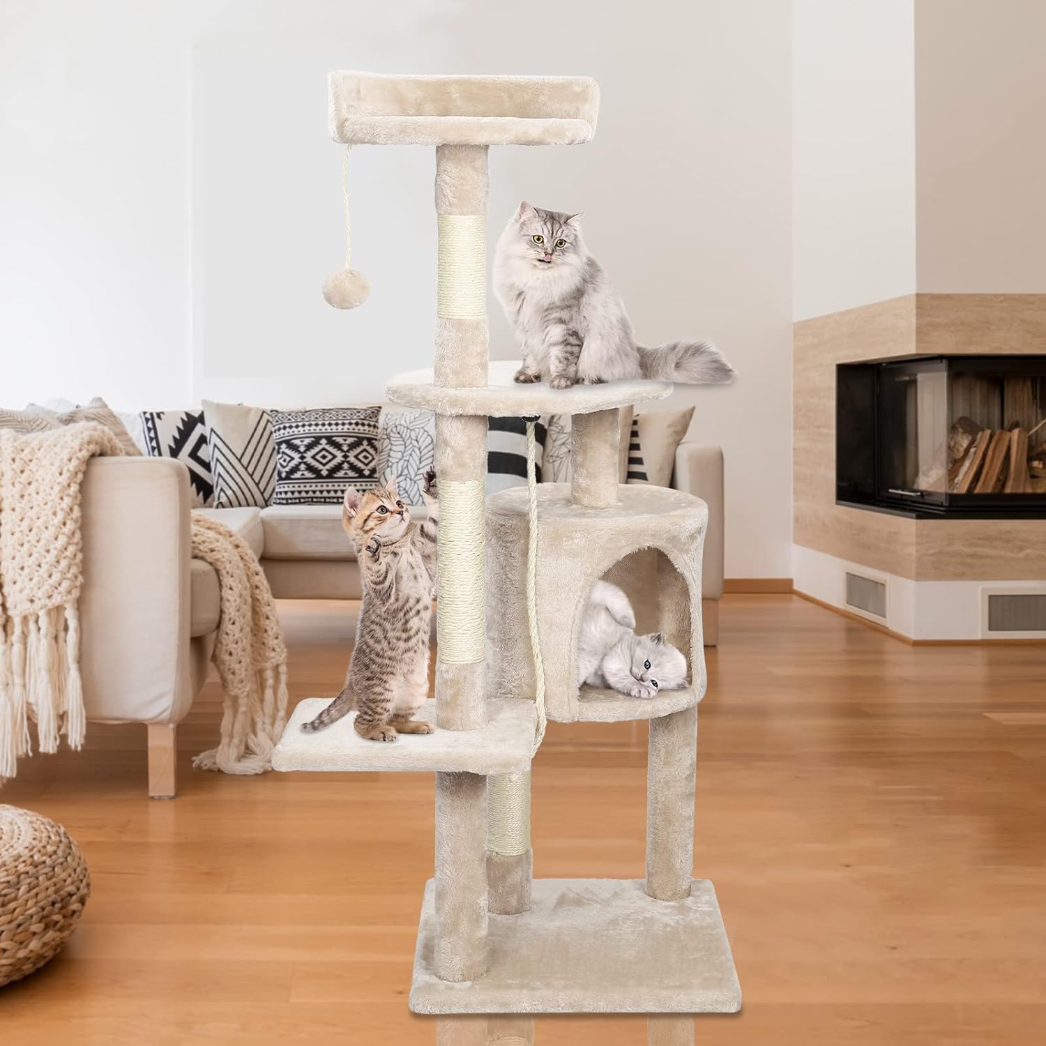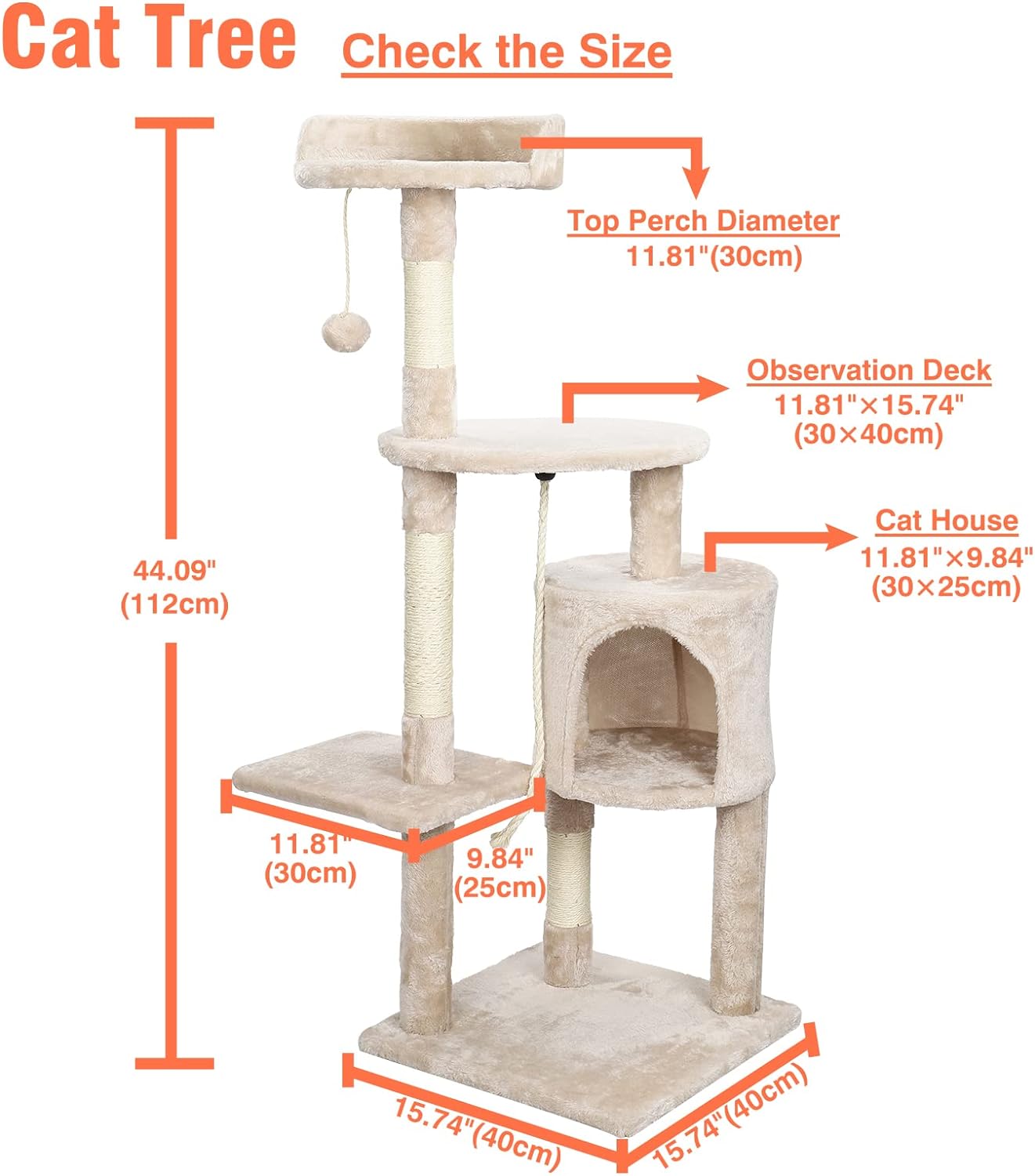 شجرة خدش القطط 112 سم، لون بيج، موديل MT04