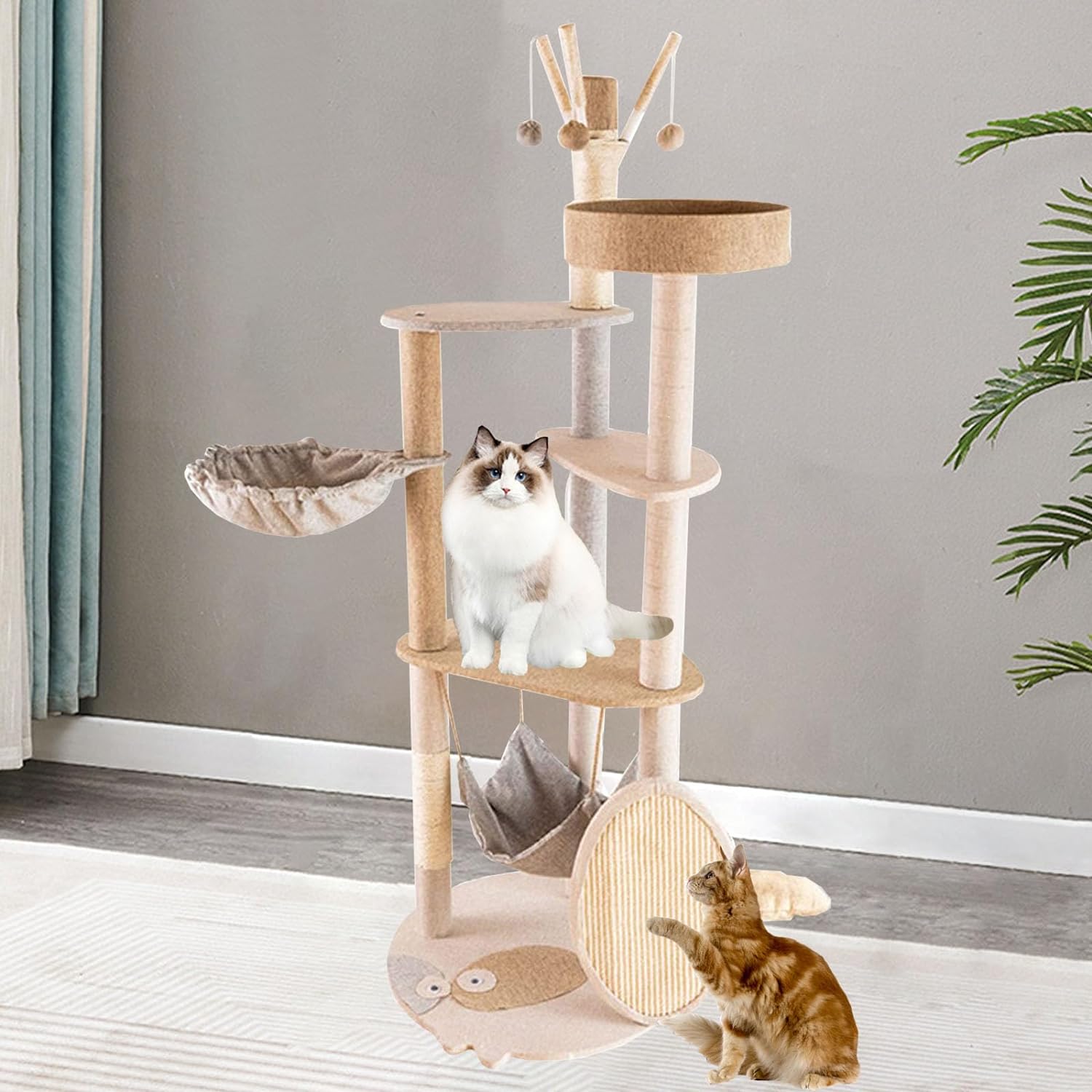 مستقرة وقوية: السلامة هي الأولوية. شجرة القطط لدينا متينة بما يكفي للقطط للقفز والخدش واللعب. هيكل قوي للغاية، تصميم متوازن، قاعدة قوية، عمود مضاد للانقلاب.