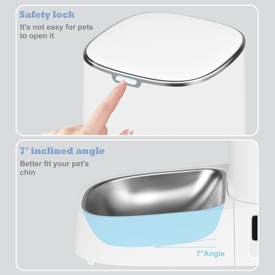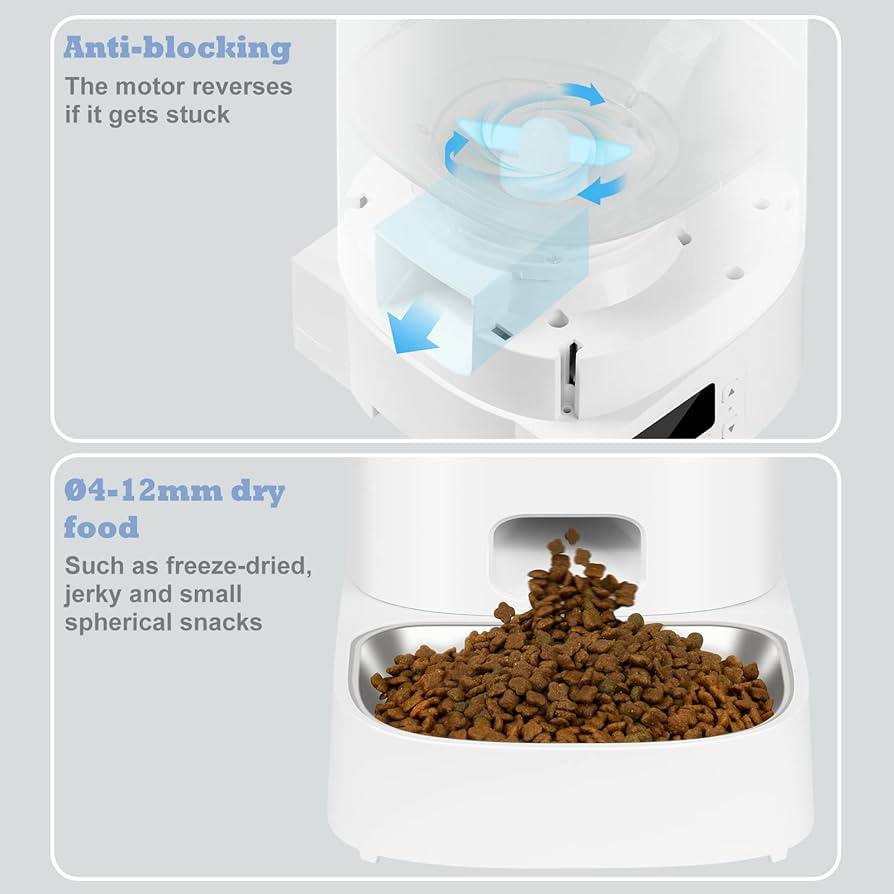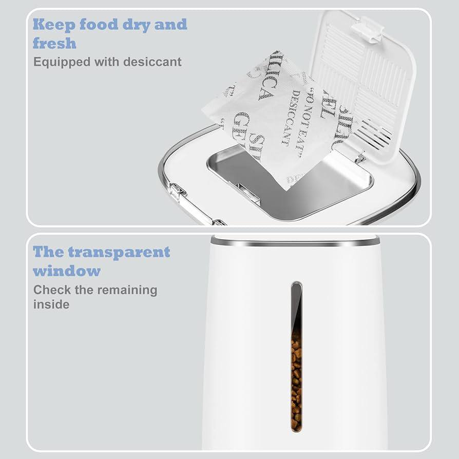 خزان تغذية L: لـ 2 إلى 3 كجم من الطعام الجاف. يختلف وزن الطعام في الحاوية وفقًا لأقطار الكروكيت. هذا الموزع مناسب للطعام الجاف بقطر 4-12 مم، مثل: المجفف بالتجميد، والوجبات الخفيفة الكروية الصغيرة، وما إلى ذلك. مواد آمنة وصحية: مصنوعة من الفولاذ المقاوم للصدأ بدرجة 304، والأوعية مقاومة للصدأ وصحية. حاوية المغذي التلقائي مصنوعة من بلاستيك ABS سهل التنظيف. توفر المواد عالية الجودة بيئة طعام آمنة لحيواناتك الأليفة. قابلة للإزالة والغسل: حاوية الطعام والأوعية المصنوعة من الفولاذ المقاوم للصدأ وإطار وعاء الحيوانات الأليفة قابلة للإزالة والغسل. نافذة شفافة: يمكنك تقييم كمية الطعام المتبقية في لمحة من أجل تجديد الطعام الجاف في الوقت المناسب. صندوق المجفف: ضع أكياس المجفف، والتي ستحافظ على الطعام جافًا وطازجًا فيه. من الأفضل استبدالها كل 60 يومًا. حشية سيليكون عالية الجودة: سيحافظ غطاء الحاوية على الطعام جافًا عن طريق حجب الهواء بالخارج بختم السيليكون. لن تنفصل حتى لو انقلبت آلة توزيع الطعام للكلاب عن طريق الخطأ. مصدران كهربائيان: عند تشغيل التيار المستمر والبطارية في نفس الوقت، يتم إعطاء الأولوية للتيار المستمر. في حالة انقطاع التيار الكهربائي، سيعمل المغذي بشكل طبيعي مع البطاريات. مضاد للانحشار: ينعكس المحرك عند وجود انحشار في الطعام، وتمنع هذه الآلية بشكل فعال انسداد آلة توزيع الطعام للقطط. مضاد للتمزق: يبلغ طول سلك الطاقة 2 متر. محمي بغلاف مضفر من النايلون، غلاف PVC لسلك الطاقة مقاوم للتمزق بحيث لا يتلف بسهولة بواسطة الحيوانات الصغيرة.