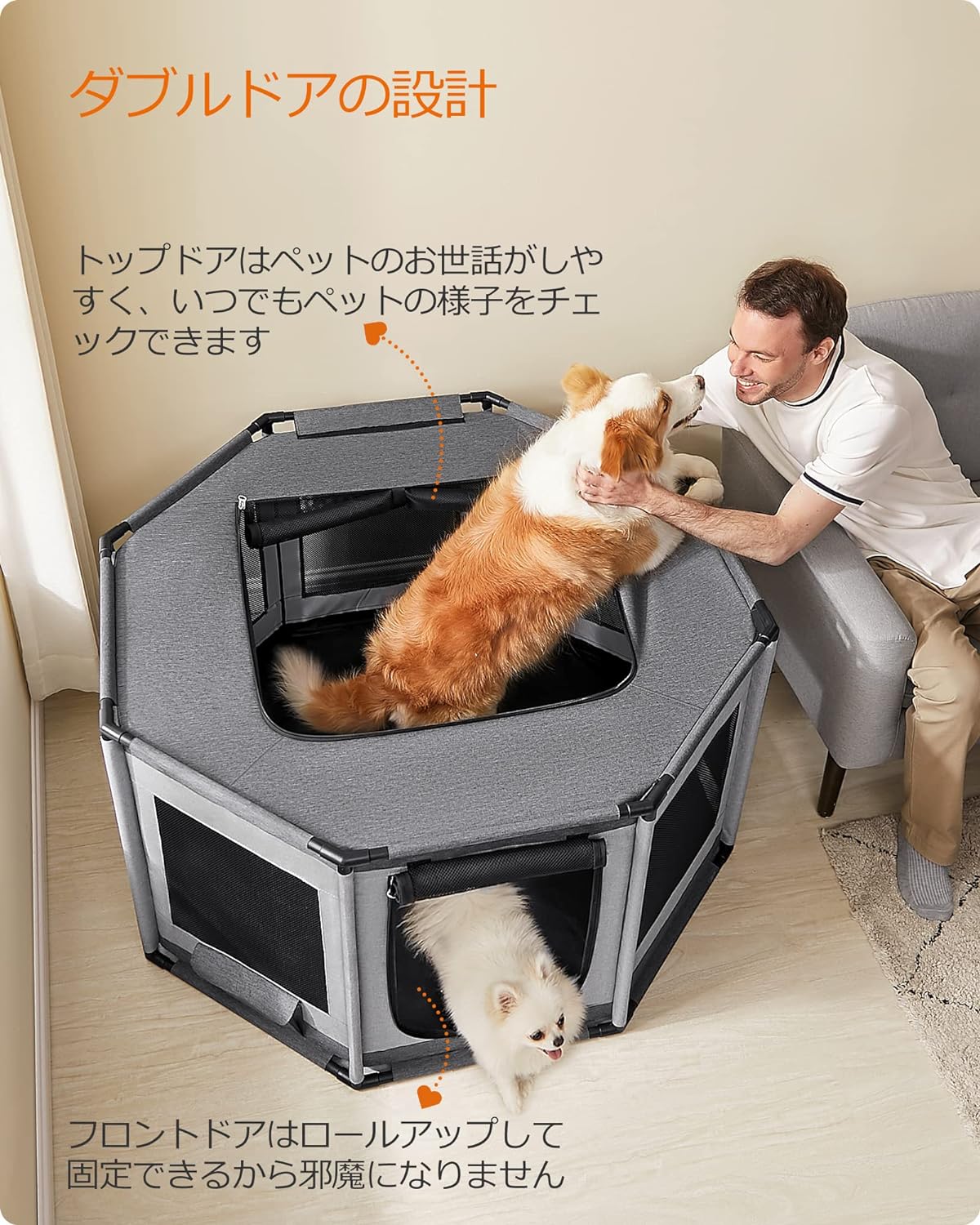 - مجموعة واسعة من الاستخدامات: يمكن استخدامها كدائرة للحيوانات الأليفة، وكذلك كبيت أو قفص للحيوانات الأليفة. مناسبة أيضًا لراحة الحيوانات الأليفة، وولادة الأطفال، والأمراض، والحيوانات الأليفة المسنة والحيوانات الصغيرة