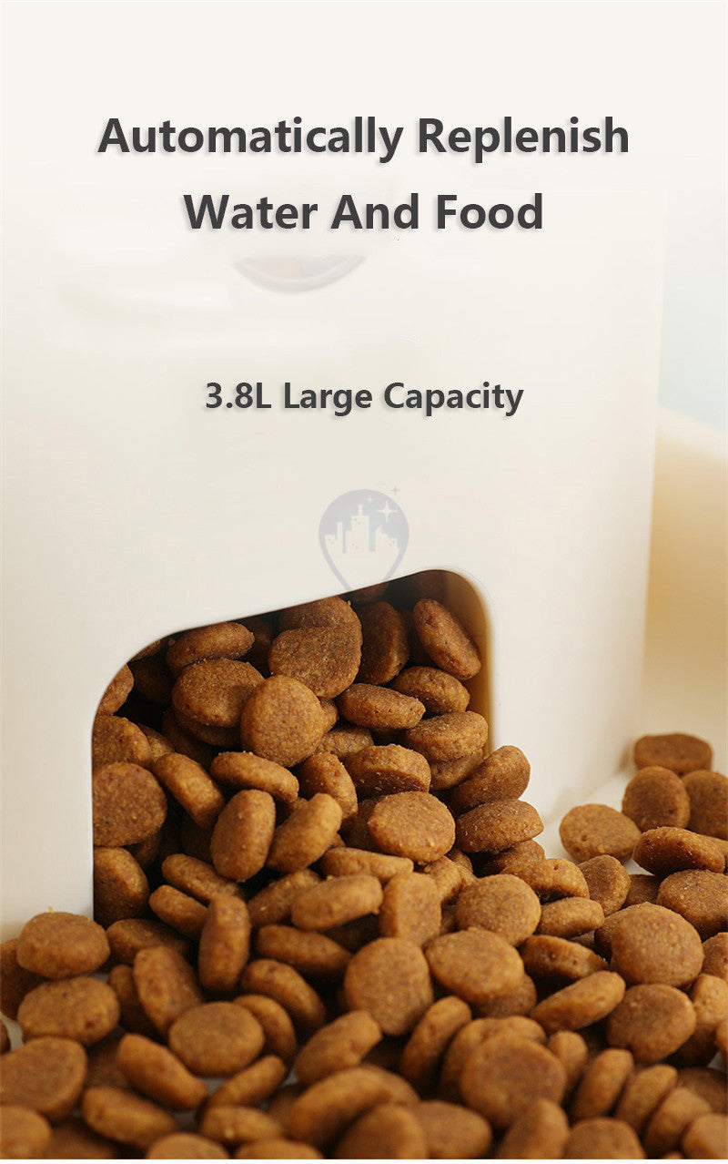 - 【سعة كبيرة】تتمتع كل وحدة تغذية أوتوماتيكية بسعة 3.8 لتر، وهي كافية لقطتك أو كلبك الصغير لتناول الطعام والشراب لمدة 4-8 أيام تقريبًا.