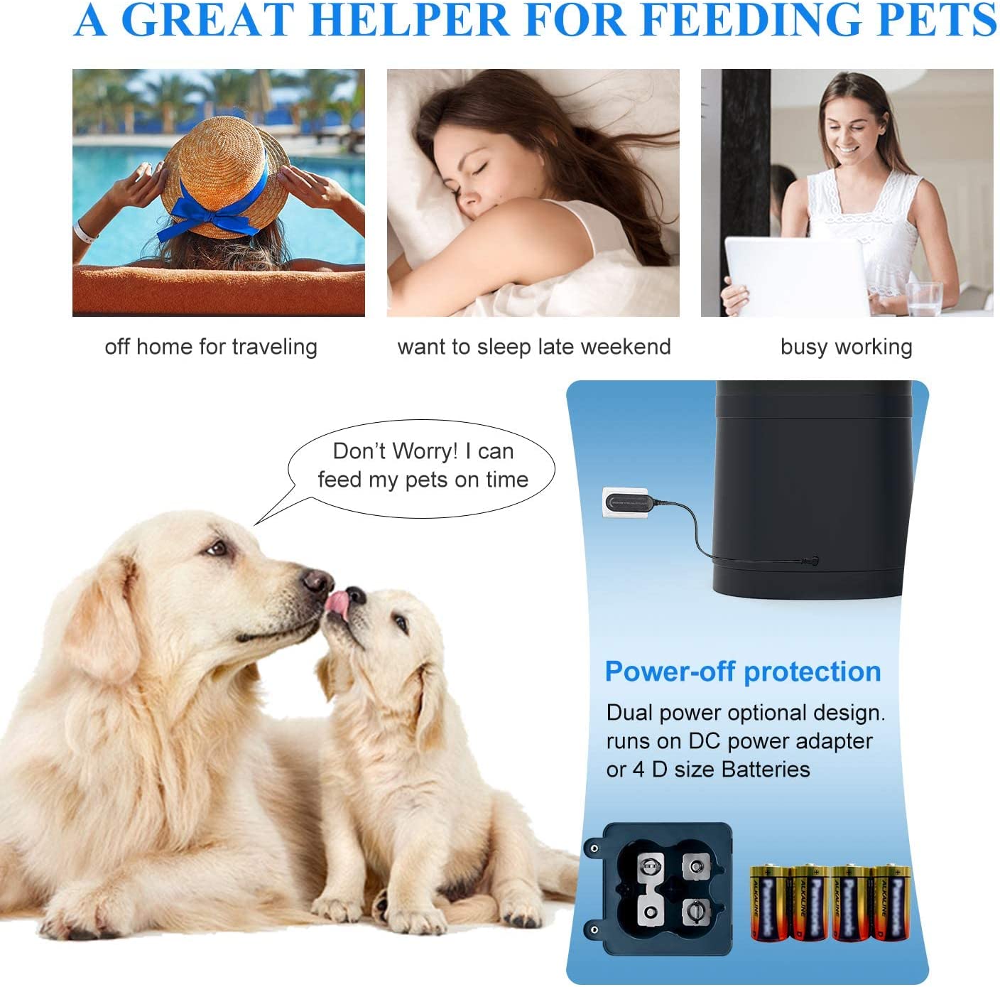 - 【جدولة وجبات مرنة】يمكنك إطعام حيوانك الأليف 6 وجبات في أوقات مجدولة، وتحتوي كل وجبة على من 1 إلى 48 حصة بحجم وحدة 6 جرام/ 0.3 أونصة (حوالي 1/16 كوب)، مما يساعد الحيوان الأليف على تطوير عادة أكل جيدة. بمجرد برمجة خطط التغذية، سيتم اتباعها بشكل دائم حتى إذا تم تغيير الجهاز إلى طاقة البطارية. هذا رائع لأصحاب الحيوانات الأليفة الذين لديهم جدول زمني مزدحم للغاية أو العزاب الذين يسافرون لعدة أيام في المرة الواحدة.