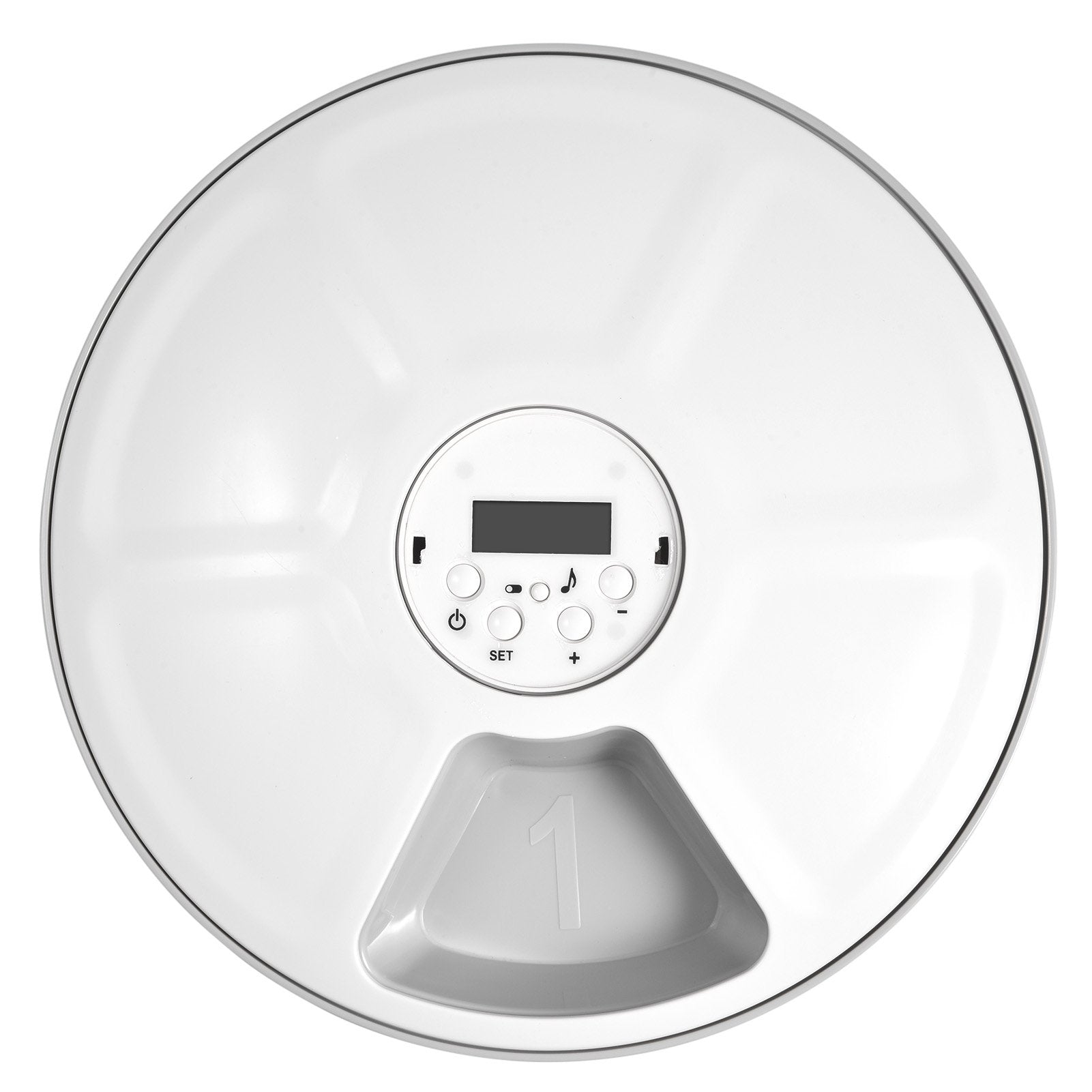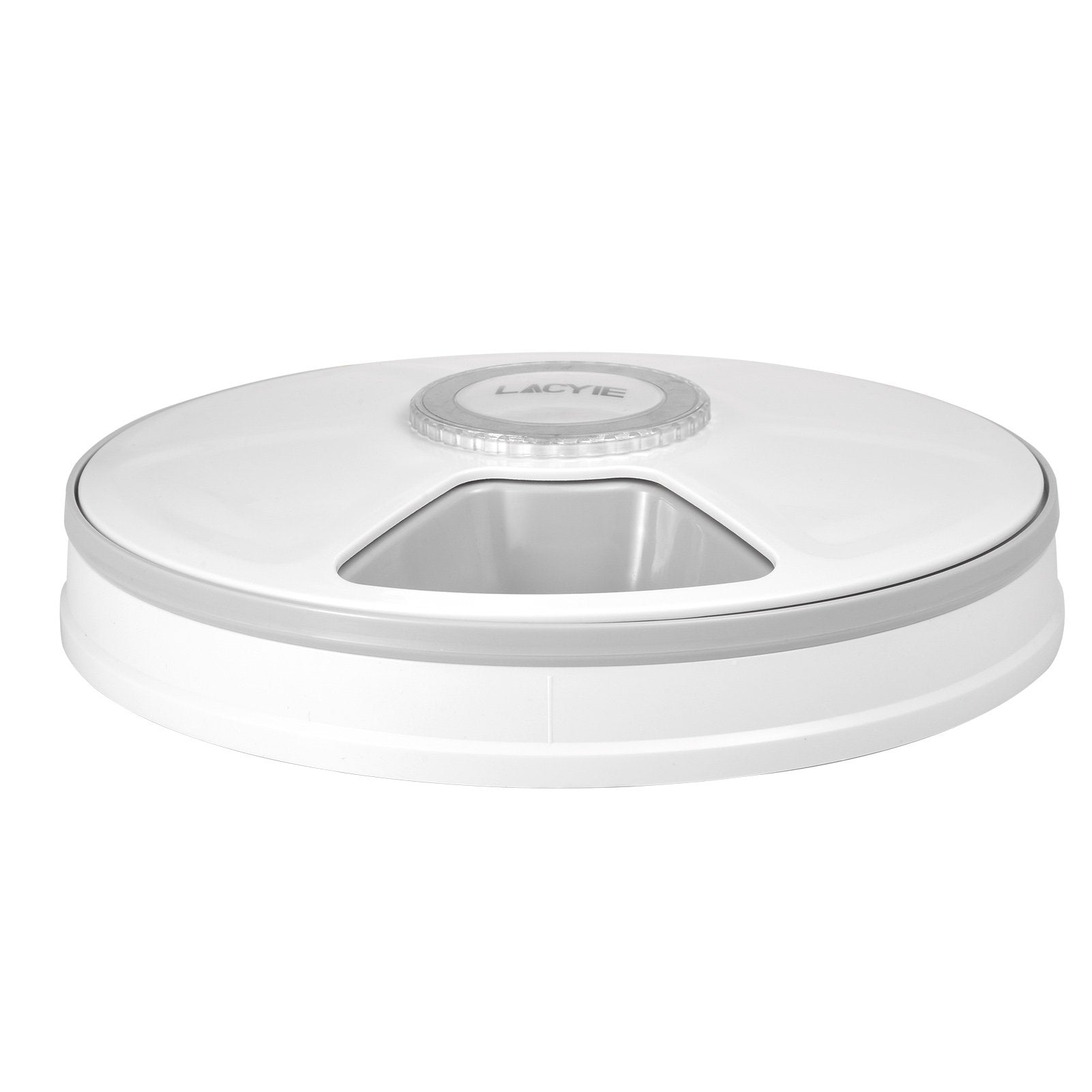 - تصميم 6 وجبات: قم ببرمجة لوحة LCD وفقًا للإرشادات التفصيلية. يمكنك ضبط 6 أوقات مختلفة و6 وجبات مسبقًا، ووضع 6 أكوام من الحبوب في 6 خلايا سعة كل منها 128 مل، ويمكن استخدام الطعام الجاف والرطب.