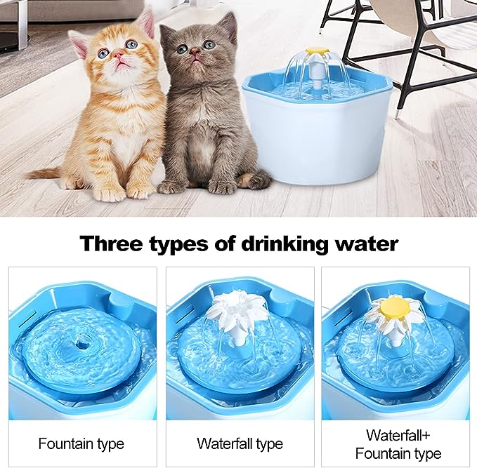 【أوضاع متعددة】ثلاثة أنواع من وضع مياه الشرب حسب اختيارك، نوع الشلال، نوع النافورة، نوع الشلال + النافورة. يمكن أن يجذب الحيوانات الأليفة لشرب المزيد من الماء، ولكن أيضًا يزيد من محتوى الأكسجين في الماء، ويحسن جودة الماء.