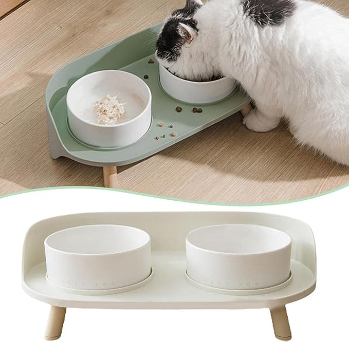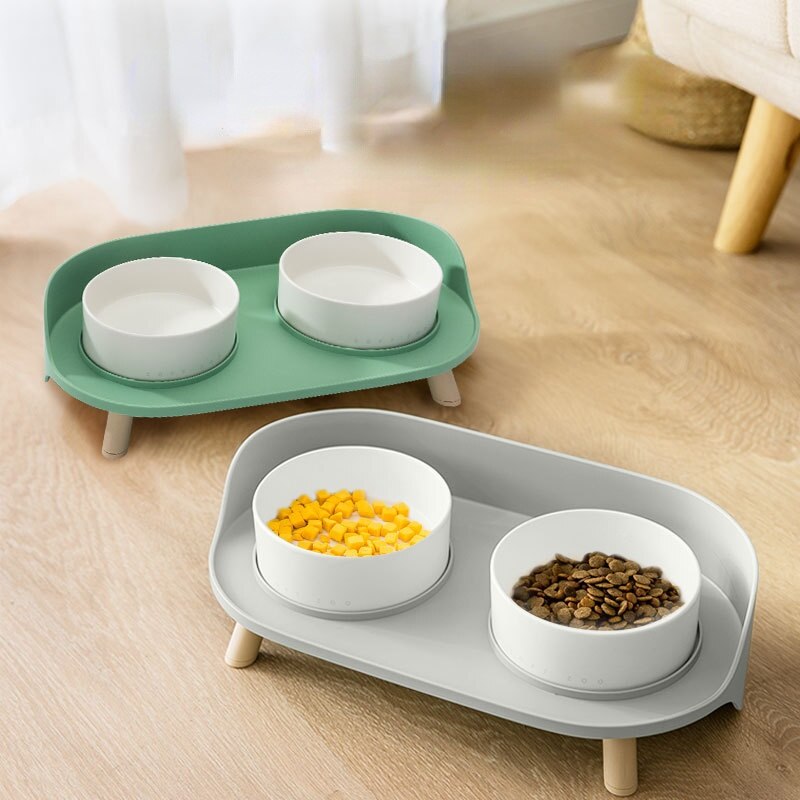 وعاء مزدوج فاخر من السيراميك للحيوانات الأليفة