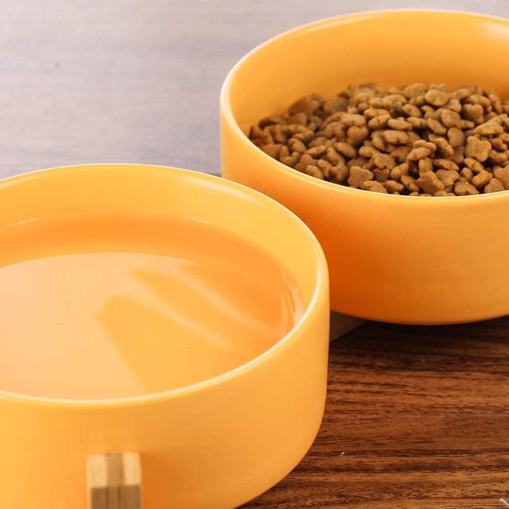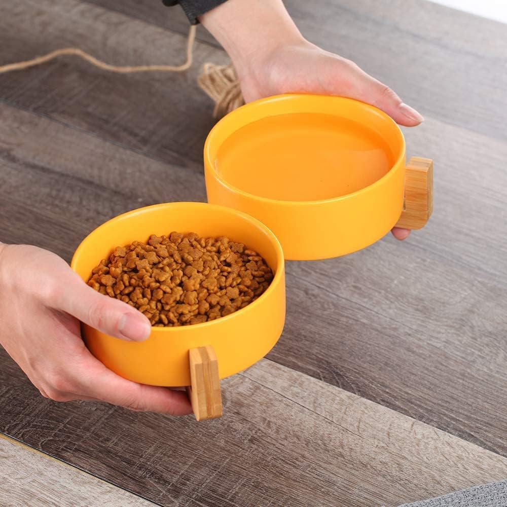 مجموعة أوعية طعام الكلاب المصنوعة من السيراميك مصنوعة من الخزف الخزفي ومادة الخشب الطبيعي، خالية من الرصاص والكادميوم. سيراميك عالي الحرارة، غير سام وغير ضار، ولا رائحة، ومتين. تعقيم نظيف، مفيد لصحة الحيوانات الأليفة.