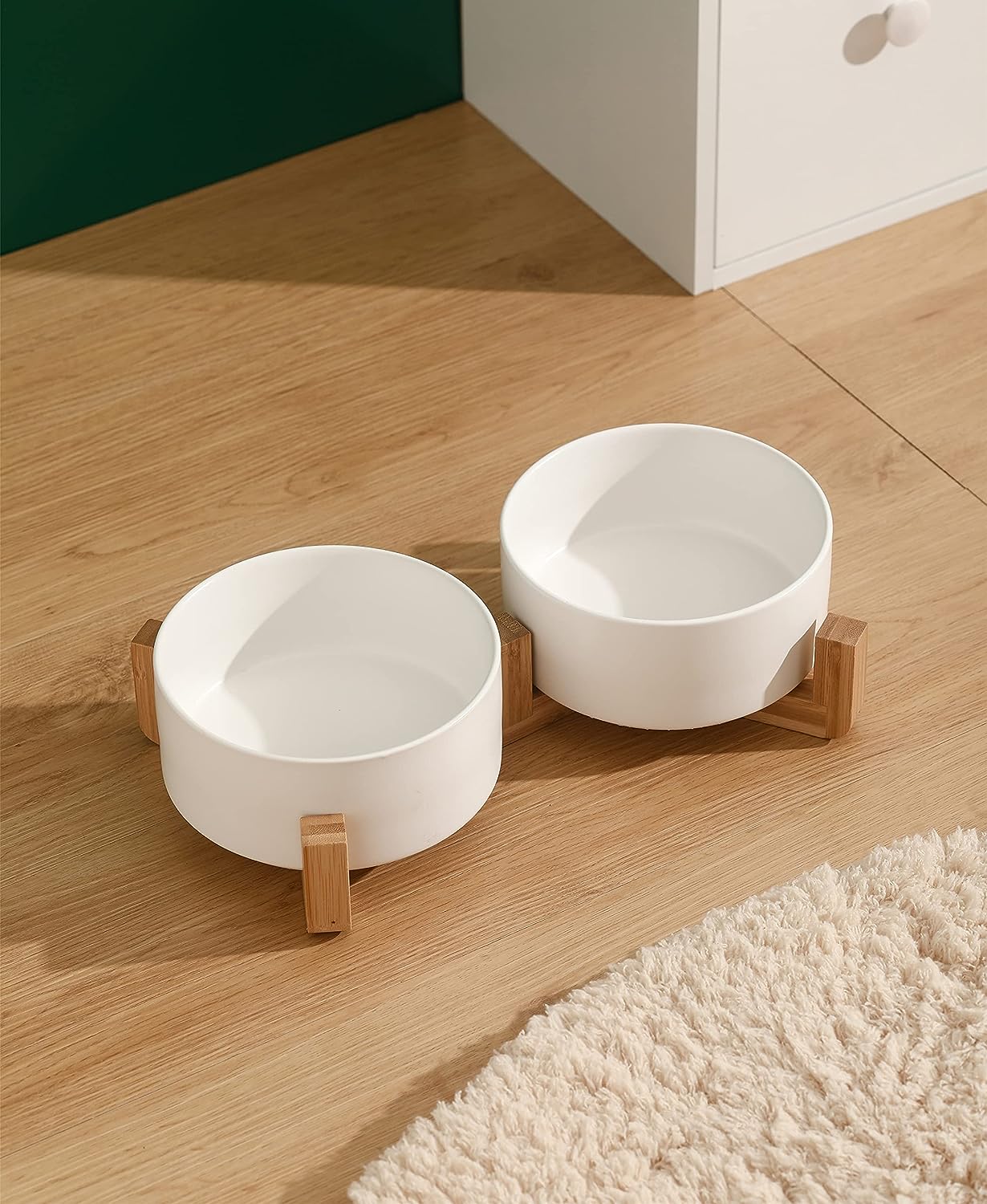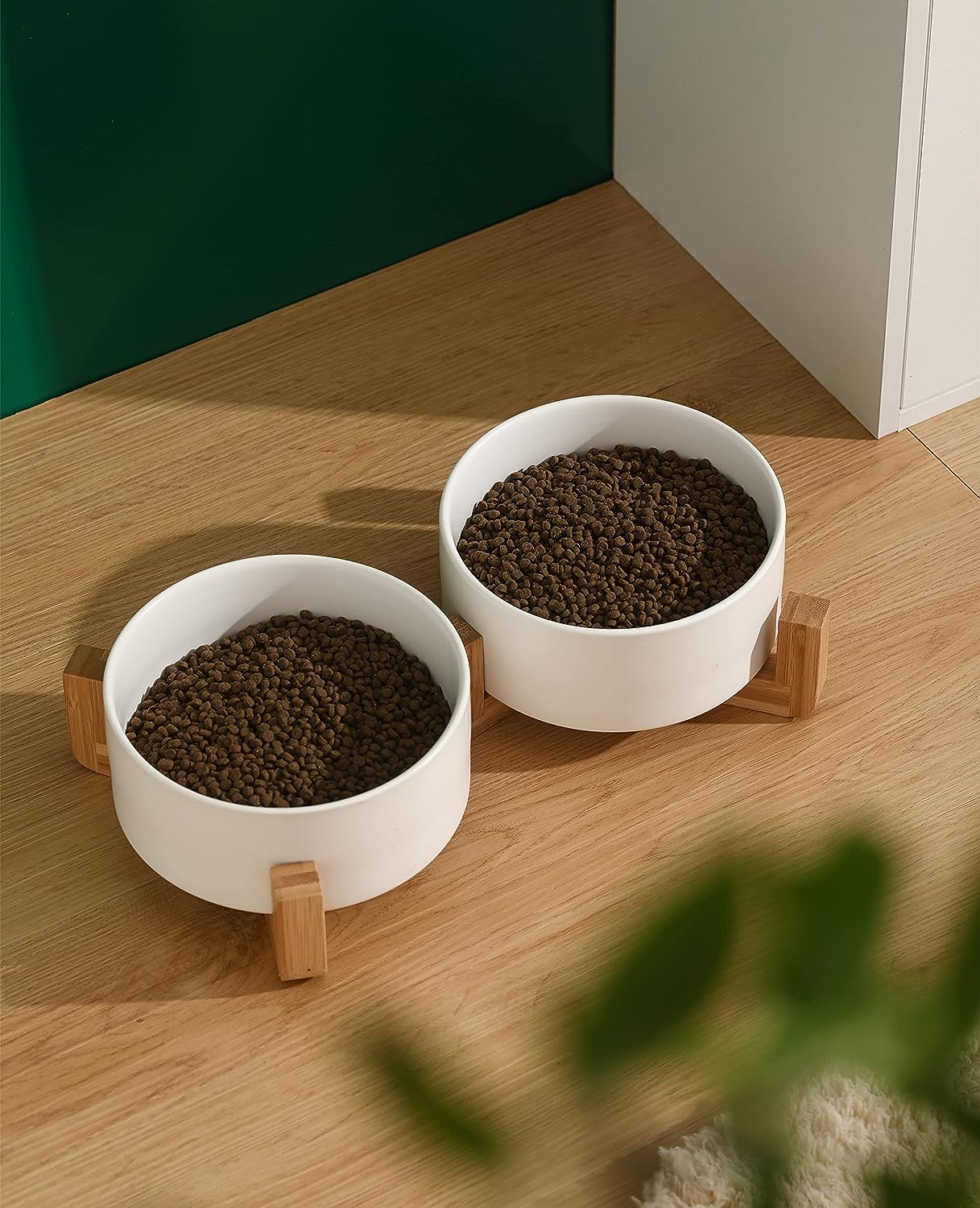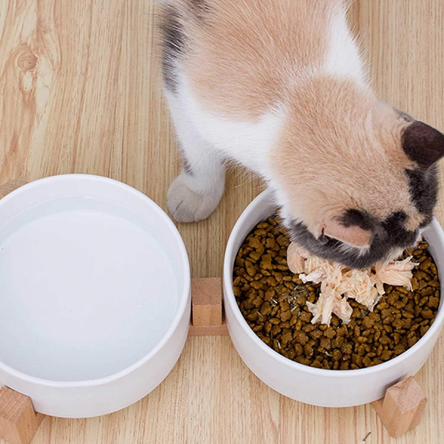 مجموعة أوعية طعام الكلاب المصنوعة من السيراميك مصنوعة من الخزف الخزفي ومادة الخشب الطبيعي، خالية من الرصاص والكادميوم. سيراميك عالي الحرارة، غير سام وغير ضار، ولا رائحة، ومتين. تعقيم نظيف، مفيد لصحة الحيوانات الأليفة.