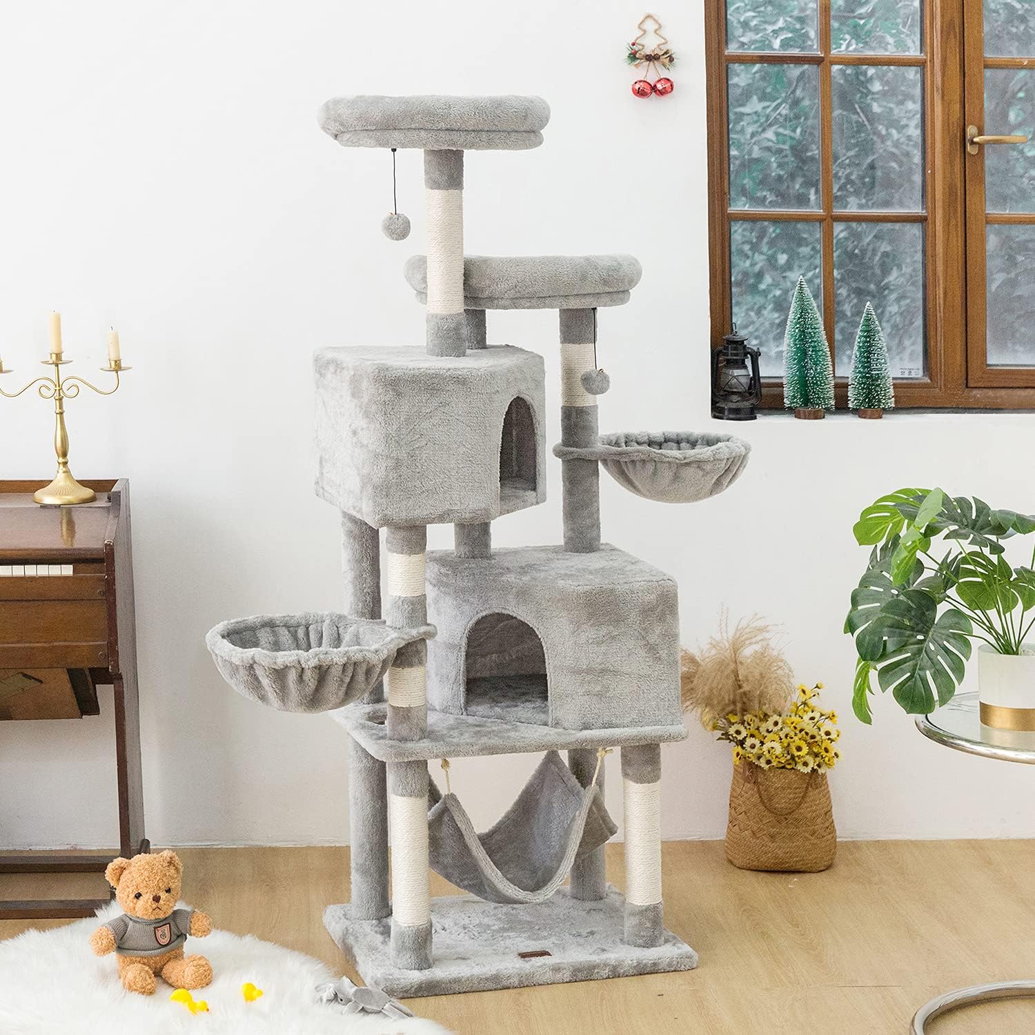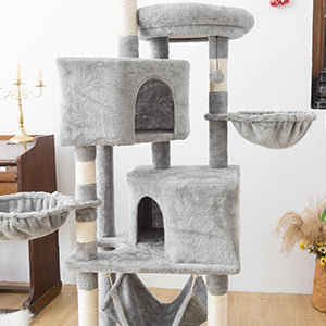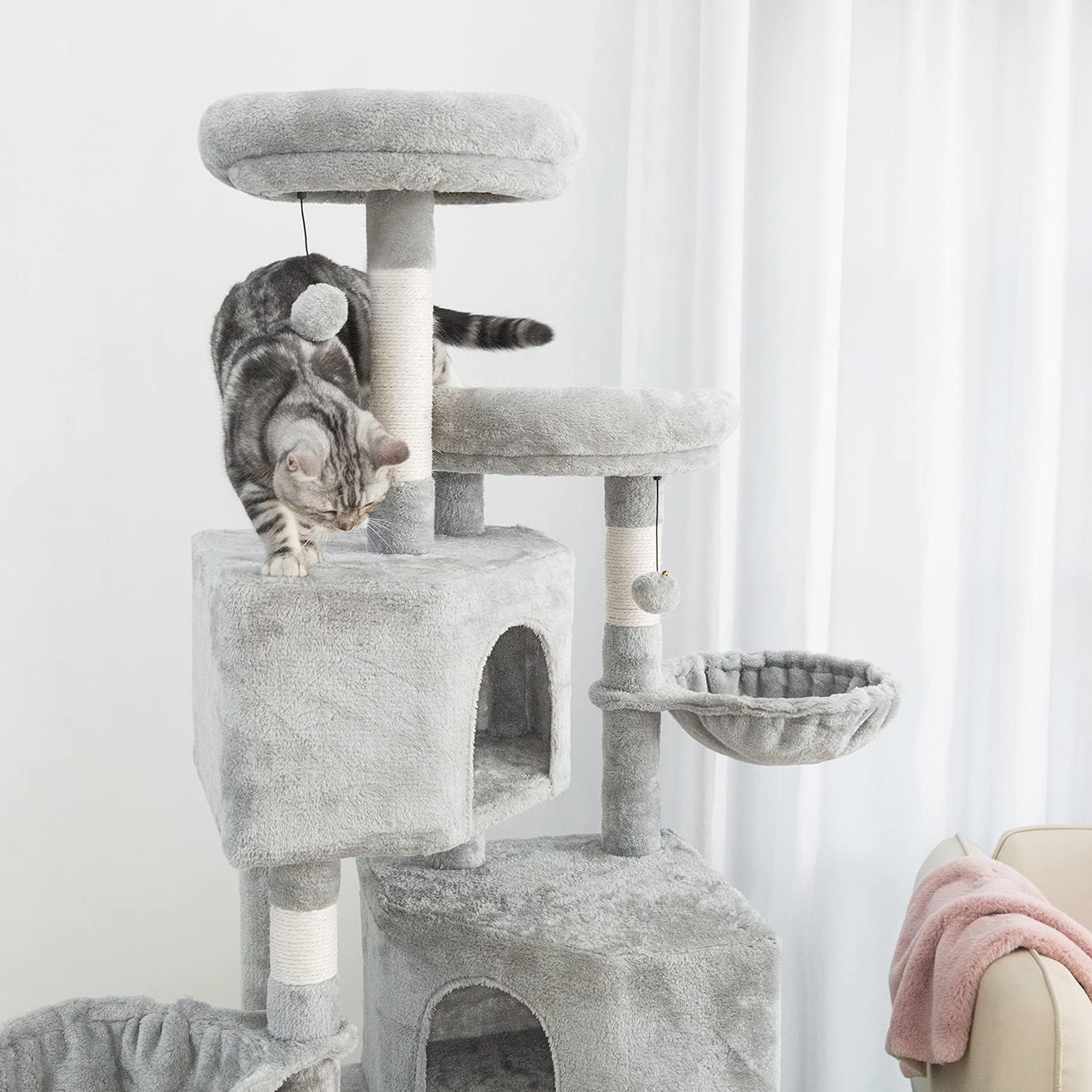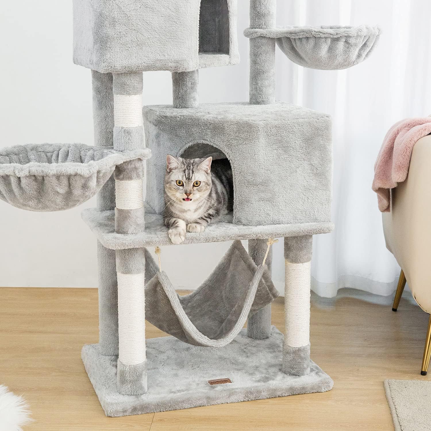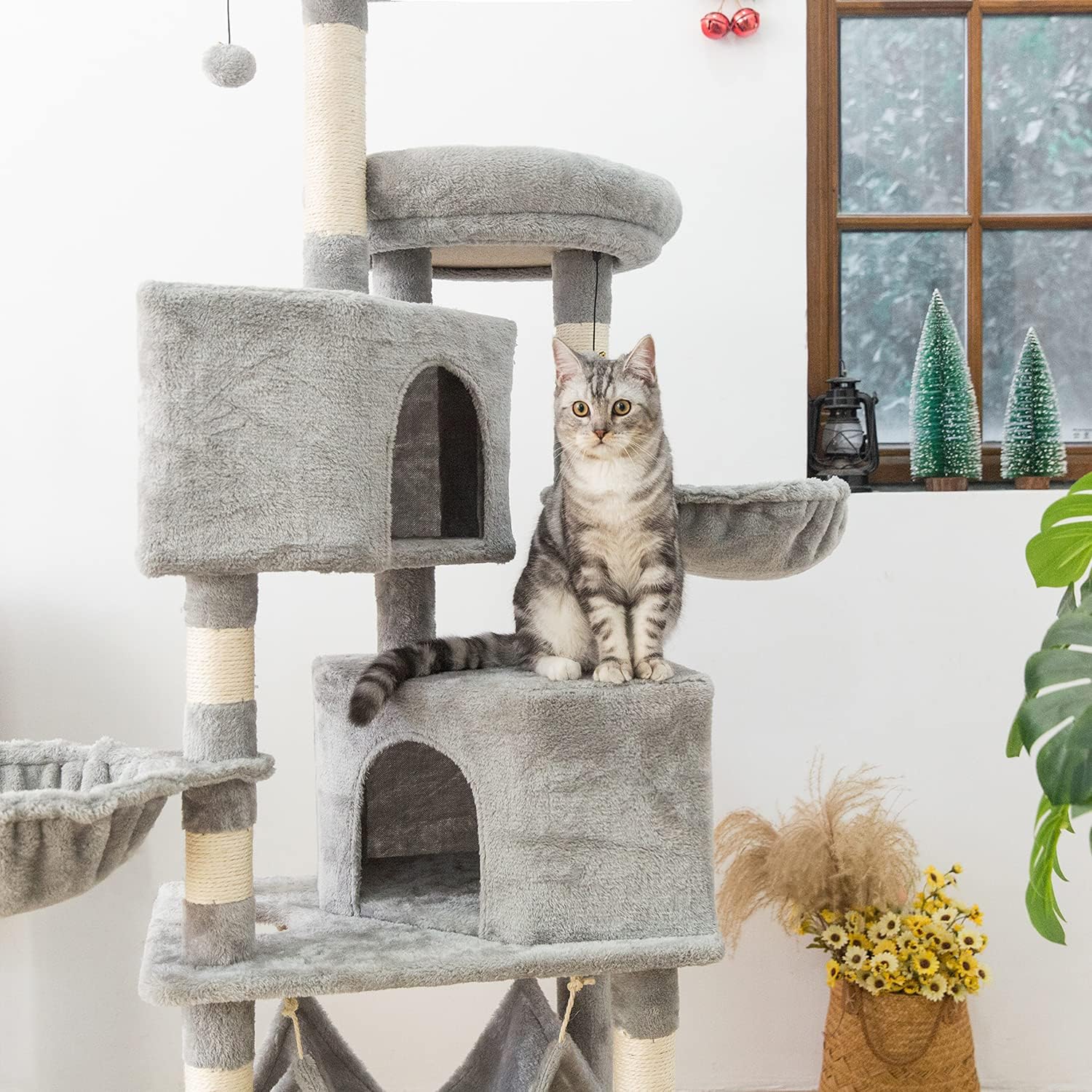 - تحتوي شجرة القطط هذه على كل ما تحتاجه قطتك للعب والخدش والاسترخاء. وهي مجهزة بمنزلين مختبئين واسعين، و2 كرسيين للاسترخاء، ومنصتين كبيرتين مبطنتين بشكل جيد مع حواف مرتفعة.