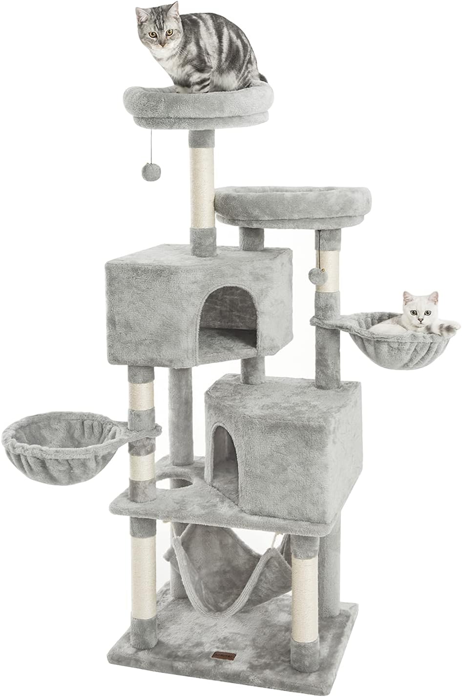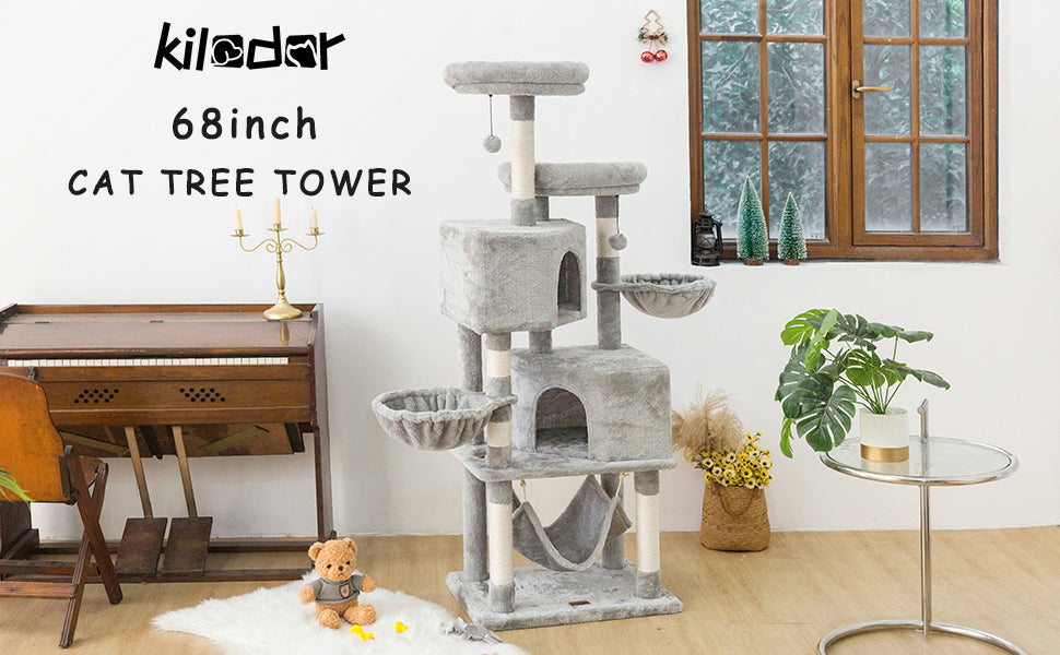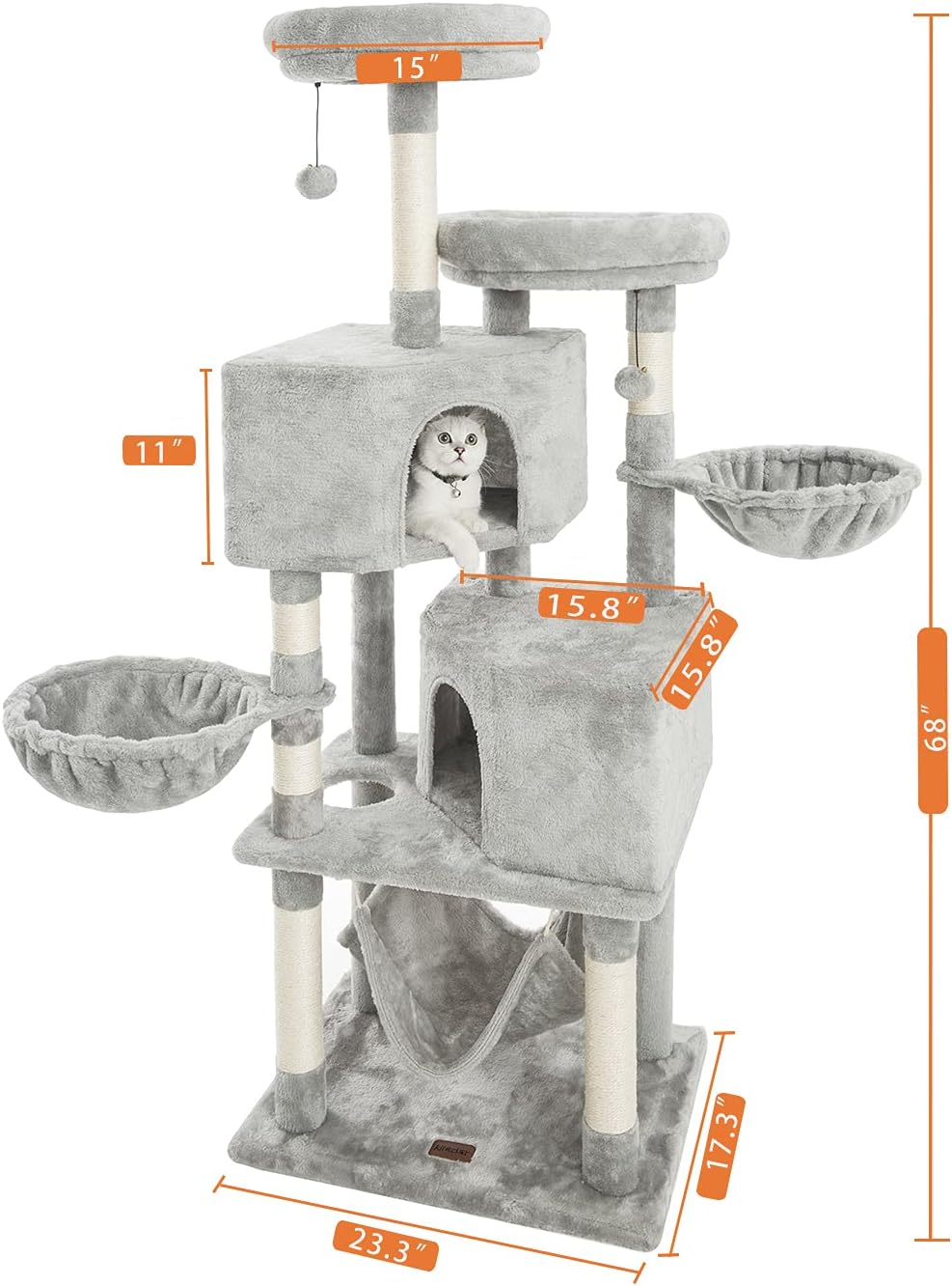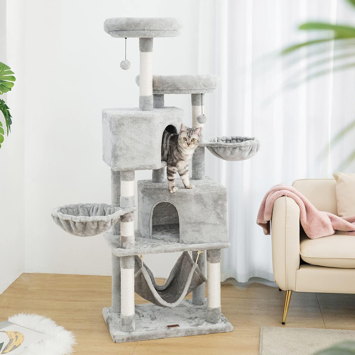 - تحتوي شجرة القطط هذه على كل ما تحتاجه قطتك للعب والخدش والاسترخاء. وهي مجهزة بمنزلين مختبئين واسعين، و2 كرسيين للاسترخاء، ومنصتين كبيرتين مبطنتين بشكل جيد مع حواف مرتفعة.