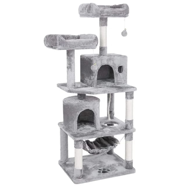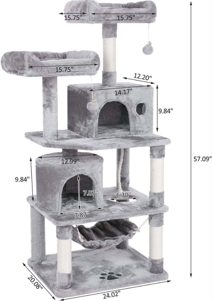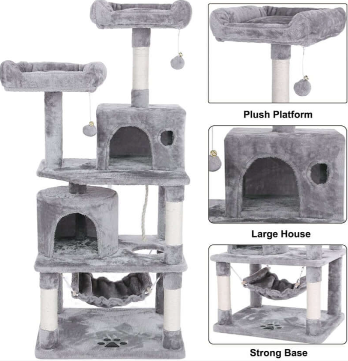 - تحتوي شجرة القطط هذه على كل ما تحتاجه قطتك للعب والخدش والاسترخاء. وهي مجهزة بمنزلين مختبئين واسعين، و2 كرسيين للاسترخاء، ومنصتين كبيرتين مبطنتين بشكل جيد مع حواف مرتفعة.