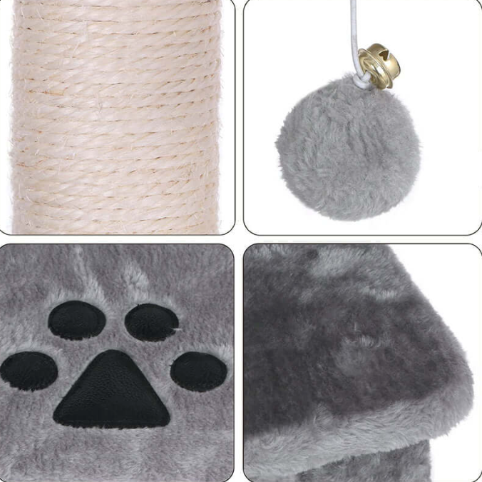 - يتكون برج القطط متعدد المستويات من مادة مخملية عالية الجودة، وهي ناعمة ومريحة للغاية. الأعمدة المقواة ملفوفة بحبل من نبات السيزال الطبيعي لحماية مخالب القطة.