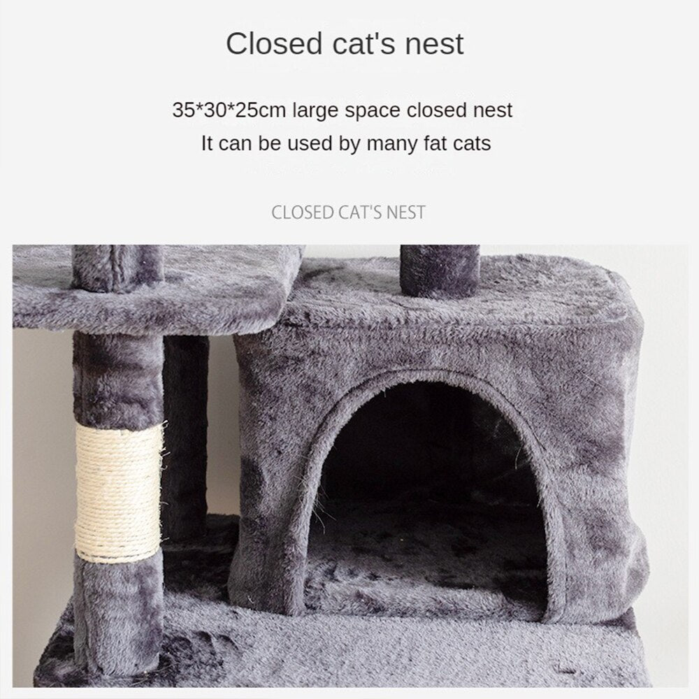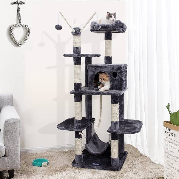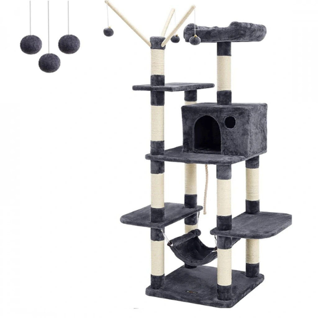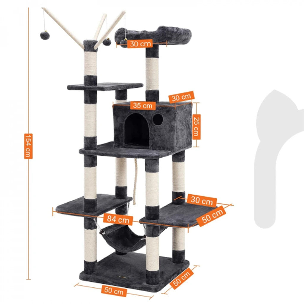 شجرة القطط هي الإكسسوار المنزلي المثالي لقطتك أو قططك، والتي يمكن أن تكون أيضًا إضافة تصميمية فريدة لغرفة المعيشة. على منصات المشاهدة ذات الحشو السميك، ستتمتع قططك برؤية مثالية لكل ما يحدث. يتم وضع منصات الراحة والأسرّة والأقفاص على مستويات ارتفاع مختلفة، لذا فإن هذه الأشجار مثالية للقطط الصغيرة والقطط الأكبر سنًا. يتم لف الأنابيب الورقية بحبل السيزال، مما يمنع القطط من شحذ مخالبها على أثاثك. الشجرة سهلة التجميع للغاية وهناك العديد من خيارات الألوان للاختيار من بينها. هذا ملحق أساسي لجميع مربي القطط.