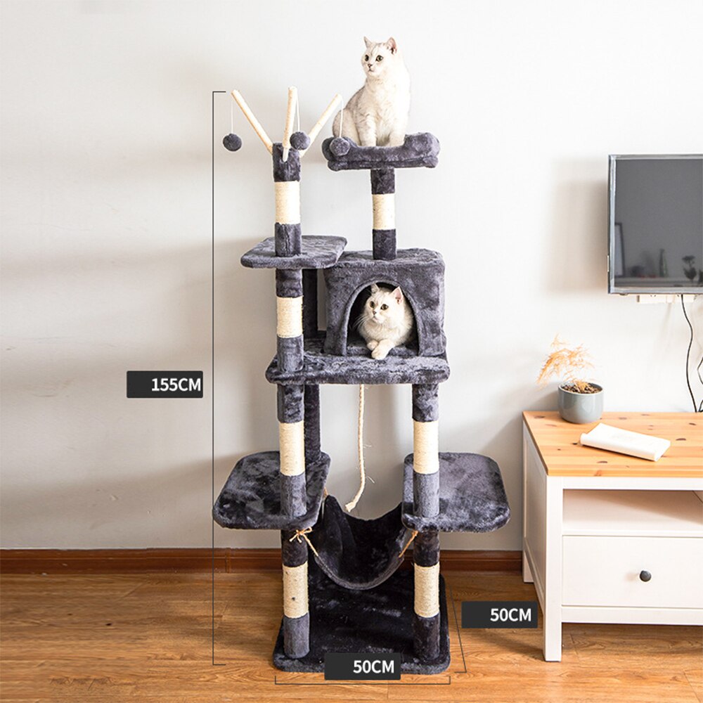 شجرة خدش القطط، باللون الأزرق والأبيض، 154 سم