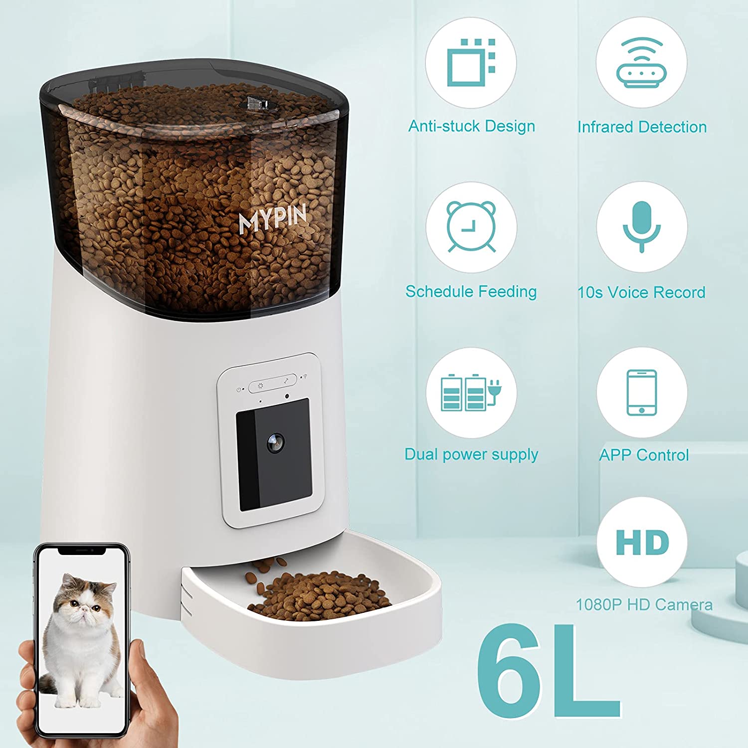 وحدة تغذية الحيوانات الأليفة MYPIN 6L WiFi أوتوماتيكية مزودة بفيديو