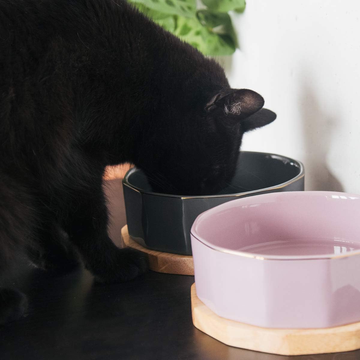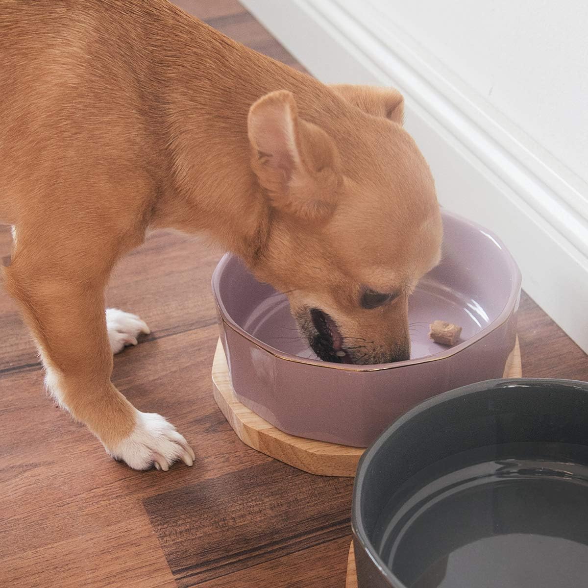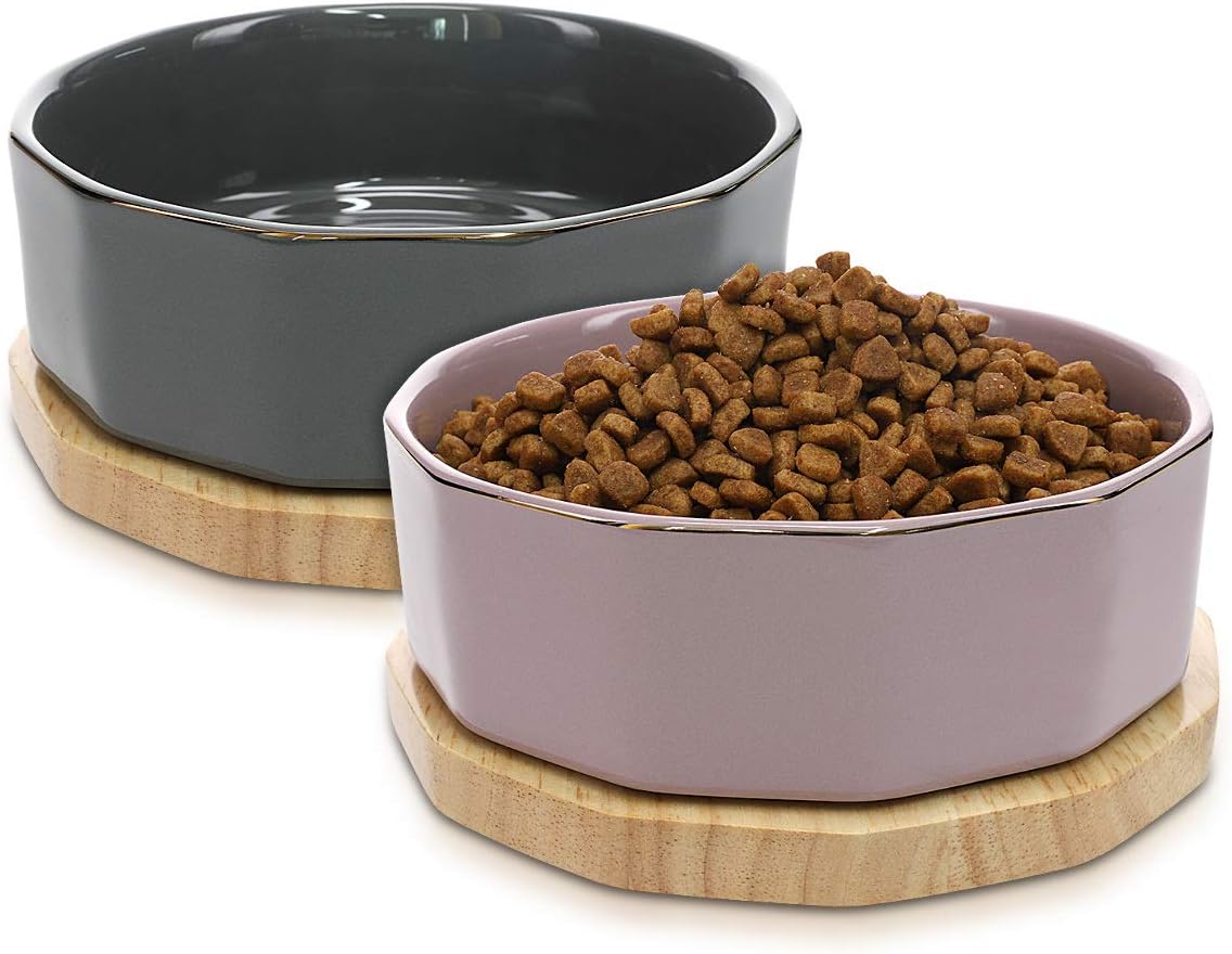• مضاد للانزلاق: إن الطبقات الخشبية السفلية المصنوعة من خشب البلوط الحقيقي لا تمنح هذه الأوعية الخزفية لمسة نهائية فريدة وأنيقة فحسب، بل تعمل أيضًا كحصائر مضادة للانزلاق للمساعدة في التأكد من بقاء الأوعية في مكانها عندما يتناول صديقك القططي أو صديقك الكلب الطعام.