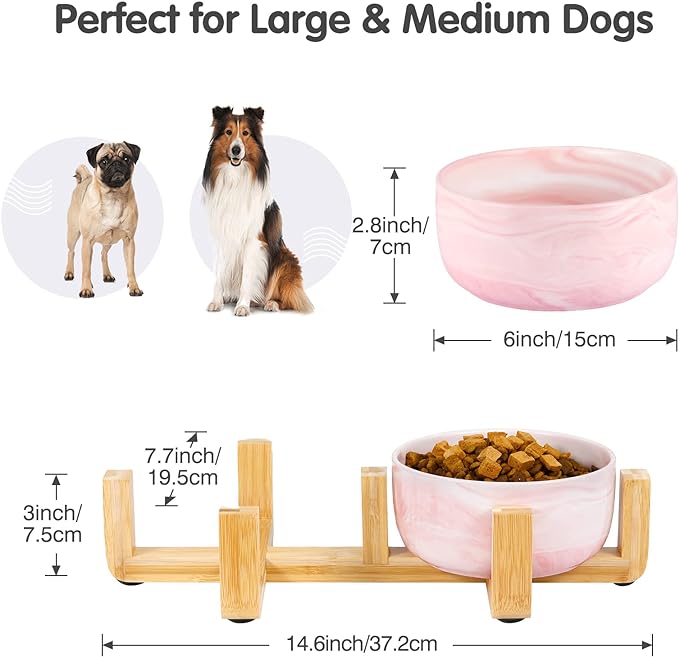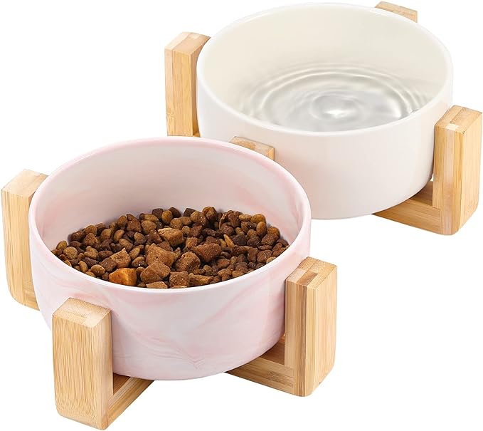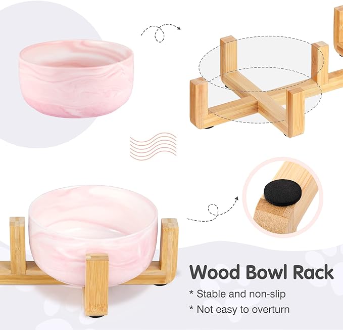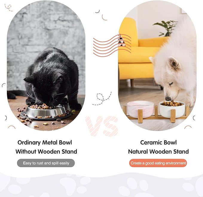 - ارتفاع معقول - الارتفاع المناسب يجعل من السهل على حيوانك الأليف امتصاص الطعام والماء وتطوير وضعية تناول طعام صحية وحماية العمود الفقري العنقي لحيوانك الأليف. يتميز وعاء الحيوانات الأليفة بتصميم حامل خشبي. يمكنه تقريب الأواني من حيوانك الأليف للحصول على وجبة أكثر راحة.