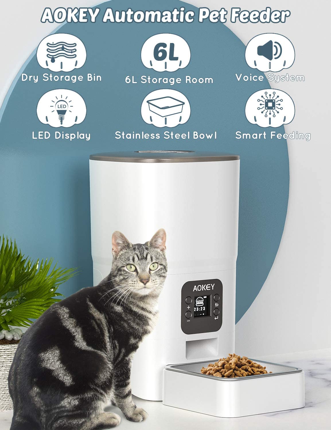 - 😺【تغذية ذكية】: يمكن لمغذي القطط إعداد ما يصل إلى 4 وجبات في اليوم، ويمكن إعداد كل وجبة حتى 6 حصص (10-20 جرام لكل حصة). تحتوي موزعات طعام القطط على خزان تخزين طعام كبير السعة 6 لتر. حتى إذا لم تكن في المنزل لمدة 2-4 أيام، يمكن لمغذيات القطط الأوتوماتيكية للطعام الجاف توفير طعام منتظم وكمي لحيوانك الأليف.