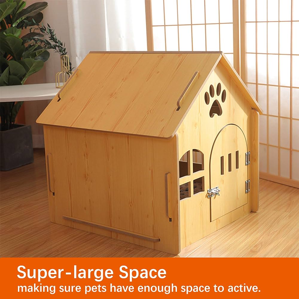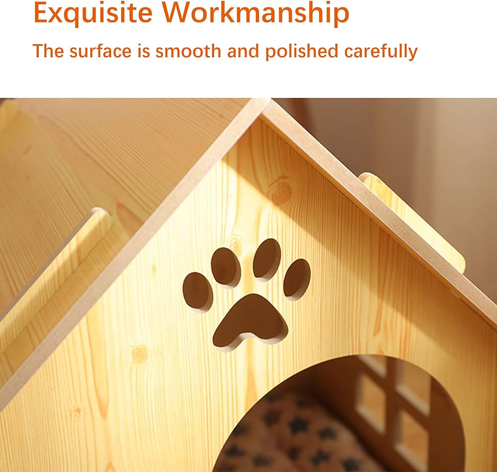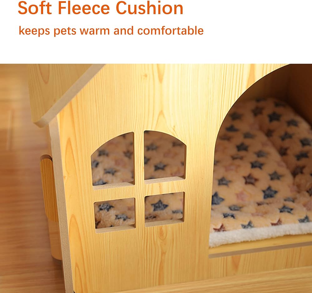 بيت قطط PetBus للقطط الداخلية مع حشوة وسرير كهف للكلاب الصغيرة وأقفاص خشبية للحيوانات الأليفة الصغيرة والأرانب مع باب ونوافذ سهلة التجميع