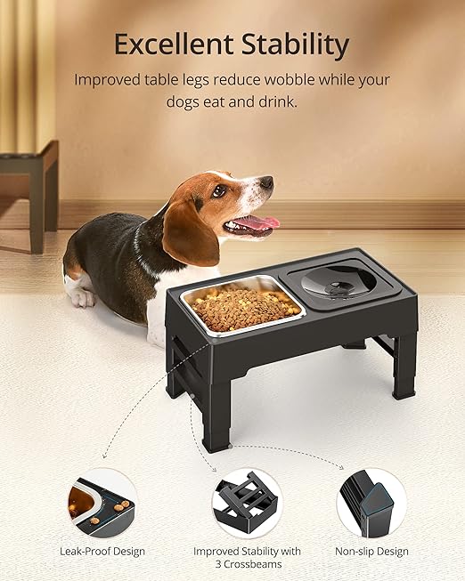 - تصميم مطور: تم تحسين الاستقرار بشكل كبير من خلال تعزيز أرجل الطاولة بثلاثة عوارض متقاطعة، مما يقلل من الاهتزاز أثناء تناول كلابك الطعام والشراب. المتانة والمواد الآمنة لن تصدأ أو تتعفن حتى عند غمرها بالمياه.