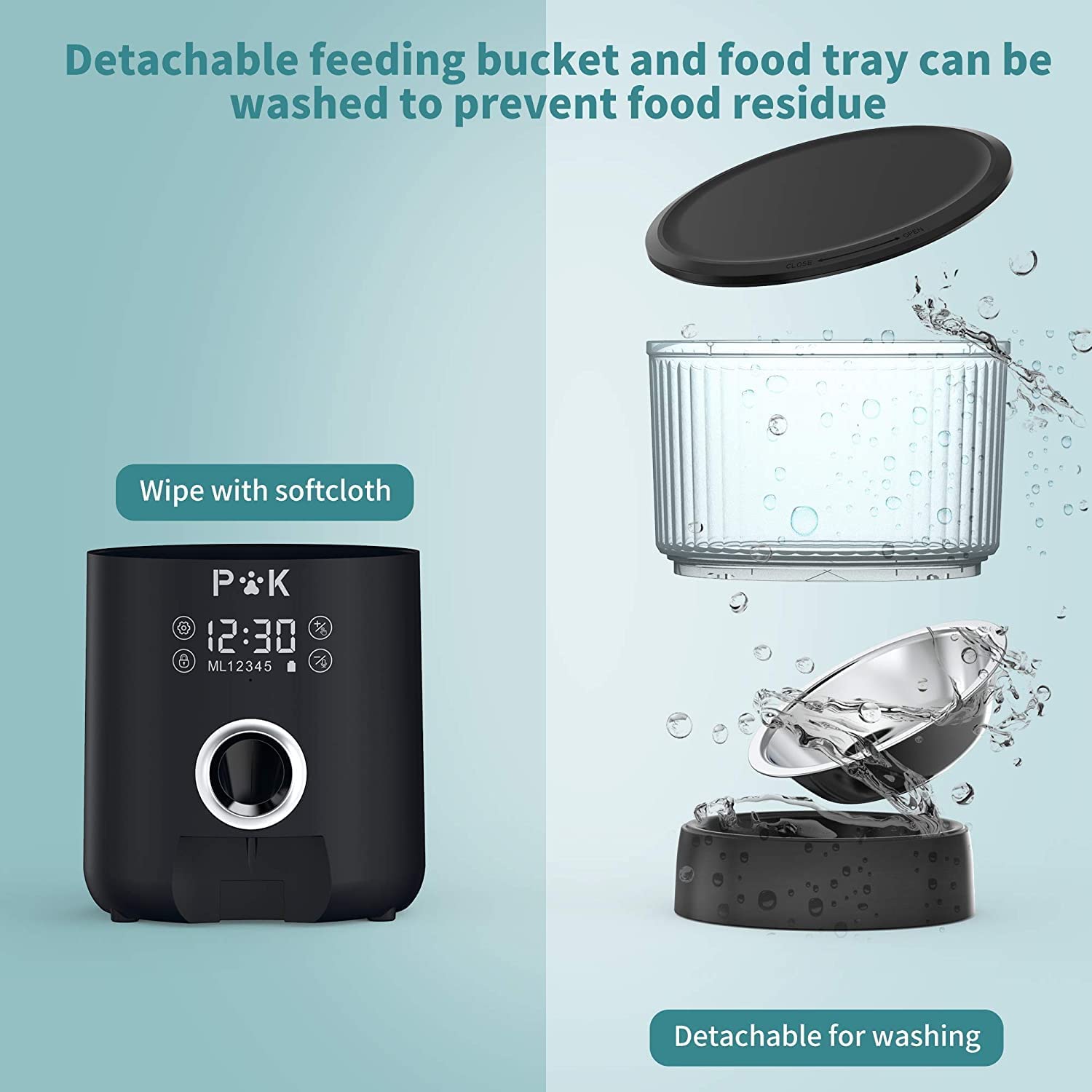 هيكل منقسمتتميز شاشة اللمس 4 لتر بهيكل قابل للإزالة يسمح لك بتنظيف دلو الحبوب والغطاء العلوي والوعاء المصنوع من الفولاذ المقاوم للصدأ في الوقت المناسب بحيث تظل الحبوب الموزعة بواسطة المغذي نظيفة ويكون طعام الحيوانات الأليفة أكثر صحة وأمانًا. |