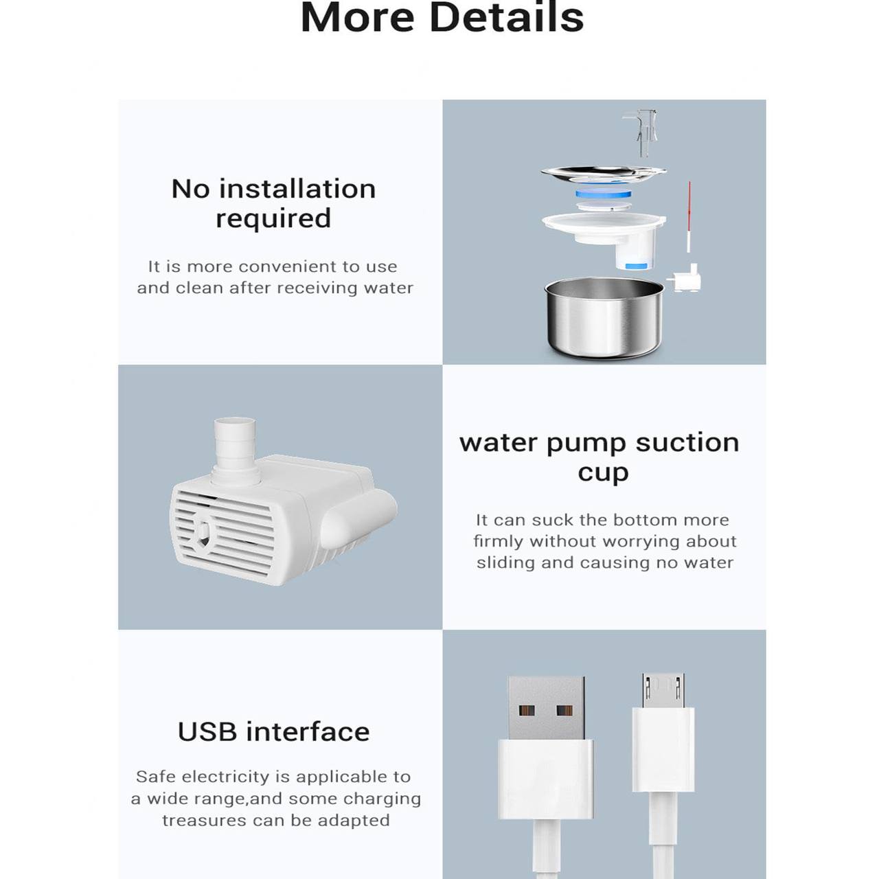 إن ضوضاء تشغيل نافورة القطط أقل من 20 ديسيبل، وهي غير مسموعة تقريبًا. يقوم نظام الترشيح بتصفية الشعر والشوائب الأخرى الناتجة أثناء الاستخدام العادي، مما يوفر لحيوانك الأليف المحبوب مياهًا نظيفة ومنعشة طوال اليوم.