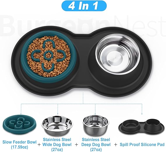 - مجموعة أوعية طعام الكلاب 4 في 1: وعاء طعام الكلاب هذا الموفر للتكلفة هو الحل الأمثل لاحتياجات تغذية كلبك. تحتوي هذه المجموعة على أربع وظائف في واحدة - الطعام والماء والمغذي البطيء والتخزين.