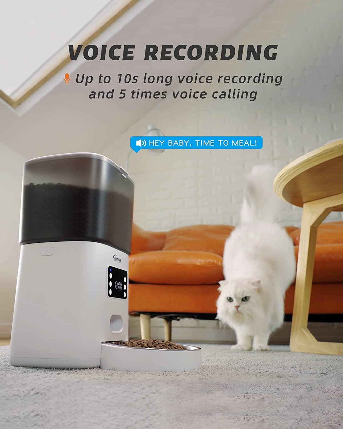 - 🐕تسجيل صوتي لمكالمة الوجبة - يمكنك تسجيل صوتك الخاص لمكالمة حيوانك الأليف لتناول الطعام، مما يجعله يشعر بالراحة والأمان. يمكن تسجيل رسالة صوتية تصل مدتها إلى 10 ثوانٍ وتشغيلها حتى 5 مرات في كل وجبة.