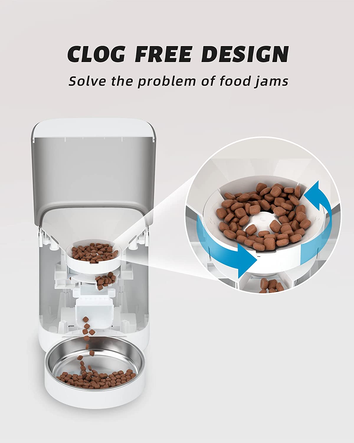 - تصميم خالٍ من الانسداد - وحدة تغذية الحيوانات الأليفة الأوتوماتيكية مزودة بنظام مضاد للانسداد أوتوماتيكيًا، مما يضمن عدم انسداد وحدة تغذية القطط والكلاب أبدًا أثناء التشغيل، مما يجعل كل قطعة من الطعام تخرج بسلاسة.