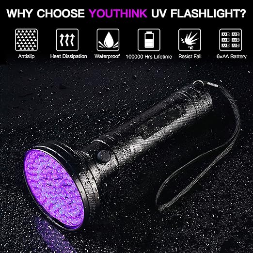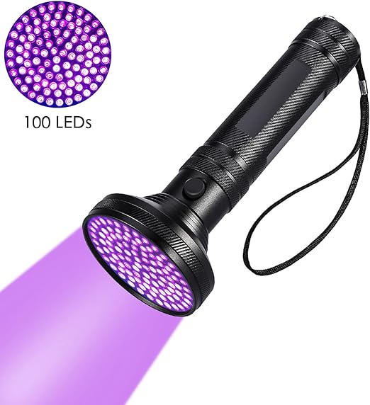 - اختبار واسع النطاق: يحتوي مصباح الأشعة فوق البنفسجية على 100 حبة مصباح LED، ينبعث منها طول موجي 395 نانومتر، ويمكنه التحقق من البقع بشكل أكثر وضوحًا وفي مساحة أكبر.