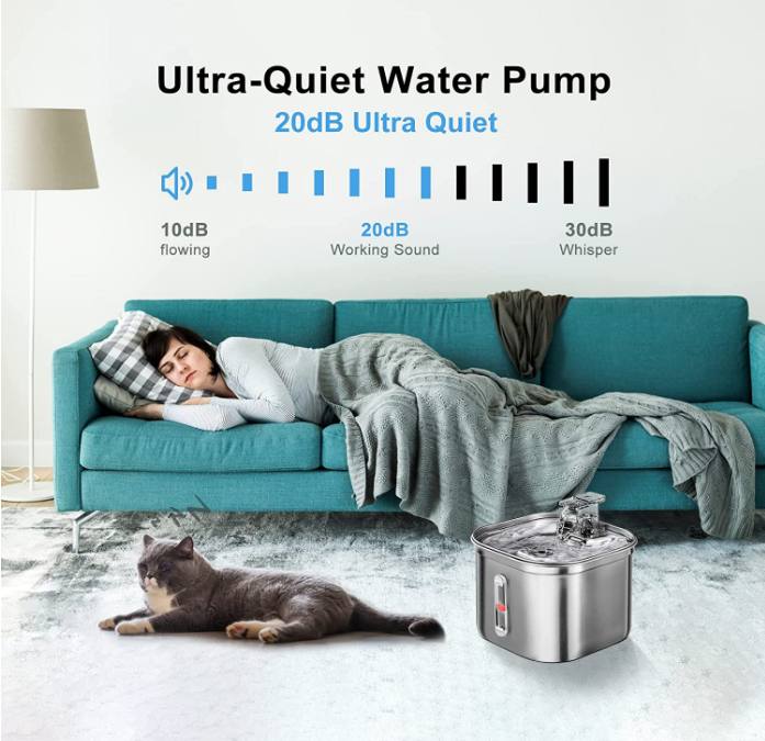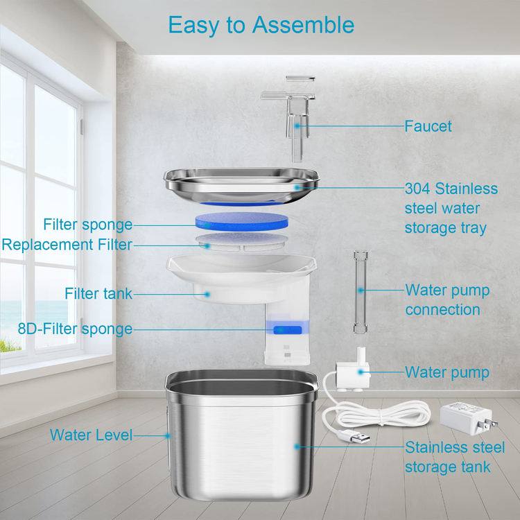 موزع المياه للحيوانات الأليفة المصنوع من الفولاذ المقاوم للصدأ بسعة 2.2 لتر هو المزيج المثالي بين التصميم العصري والوظائف. مصنوع من الفولاذ المقاوم للصدأ عالي الجودة 304، ويوفر نمط تدفق مياه قابل للتعديل يمر عبر عشر طبقات من الترشيح لضمان تلبية حاجة حيوانك الأليف إلى المياه النقية. يعمل التشغيل الصامت على إبقاء منزلك هادئًا، وتضمن نافذة مستوى المياه المرئية عدم نفاد المياه أبدًا