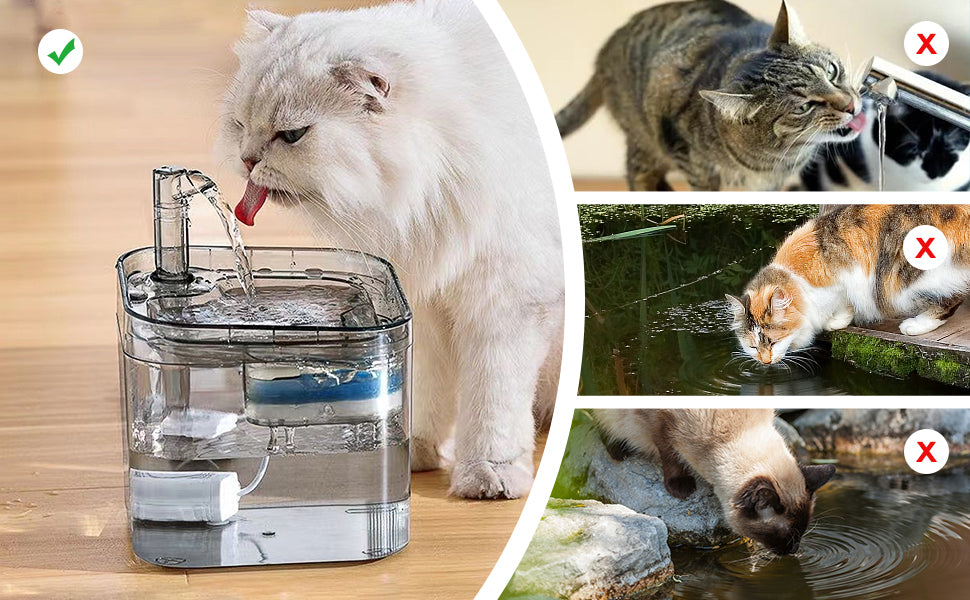 Large capacity of 2.2 L and 300 ml emergency water: The 2.2L cat drinking bowl is suitable for cats, dogs. It does not need to be refilled frequently(remember to change the water once a week). In addition, the cat water dispenser comes with a 300ml cat bowl that holds enough water for 2 days to meet your pet's daily water needs in case of power outage or when you are on the go without worrying about your dear pet