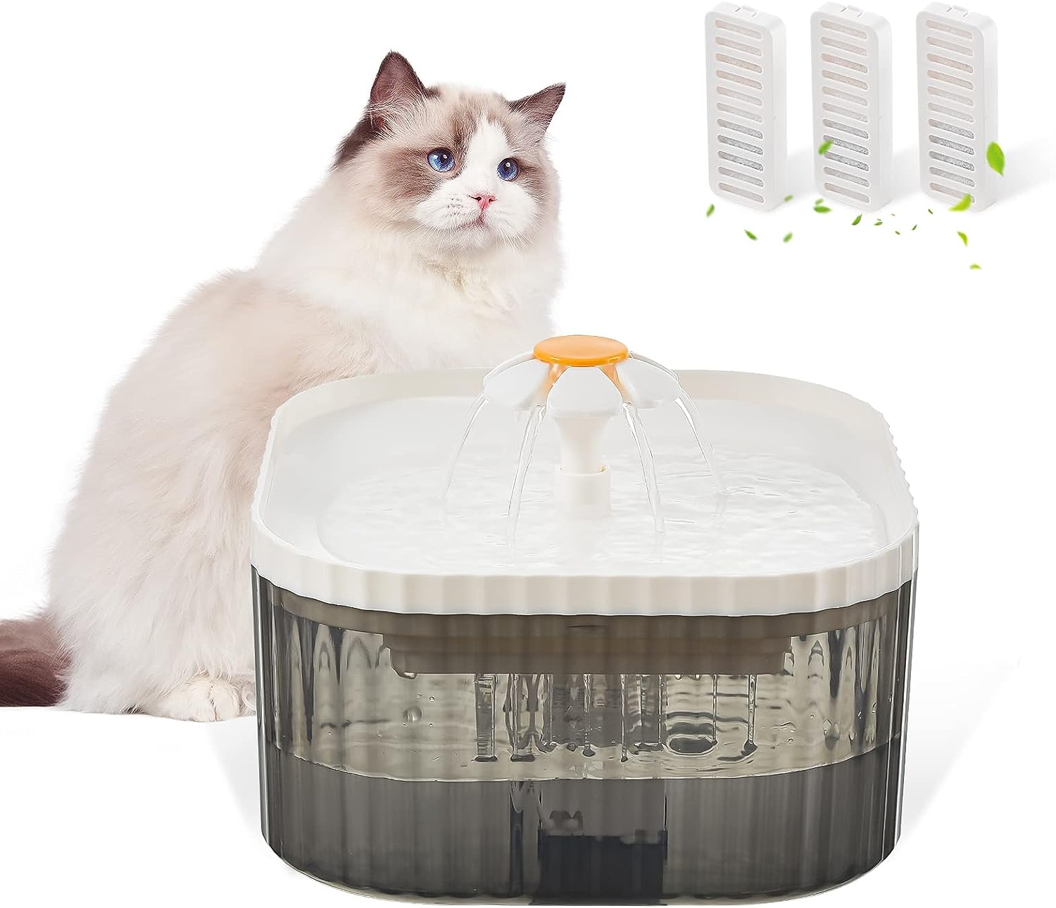 نافورة زهور أوتوماتيكية للكلاب والقطط (أخضر) نافورة مياه للقطط من جيراميا بسعة 85 أونصة/2.5 لتر مع إضاءة LED وموزع مياه فائق الهدوء للحيوانات الأليفة مع مضخة ذكية و3 فلاتر بديلة