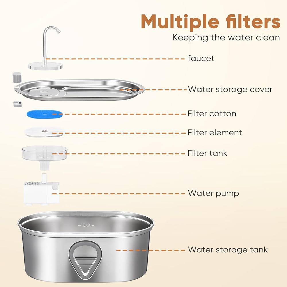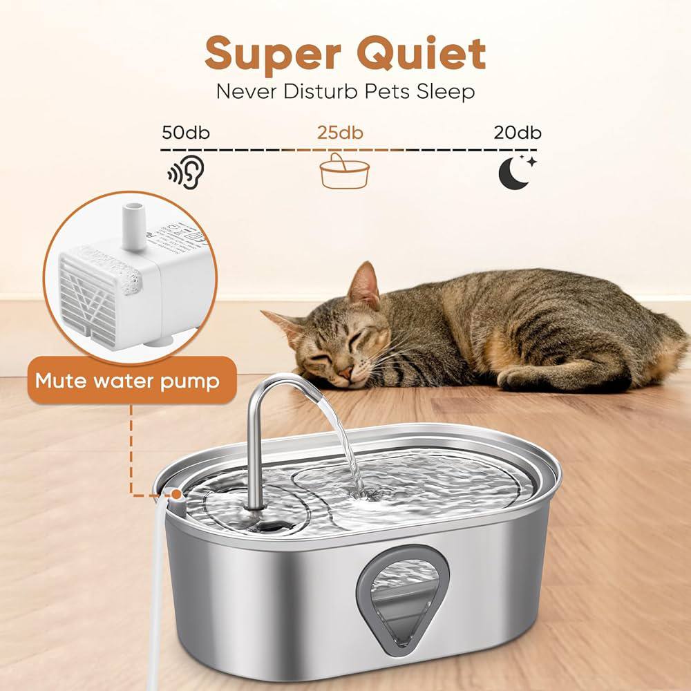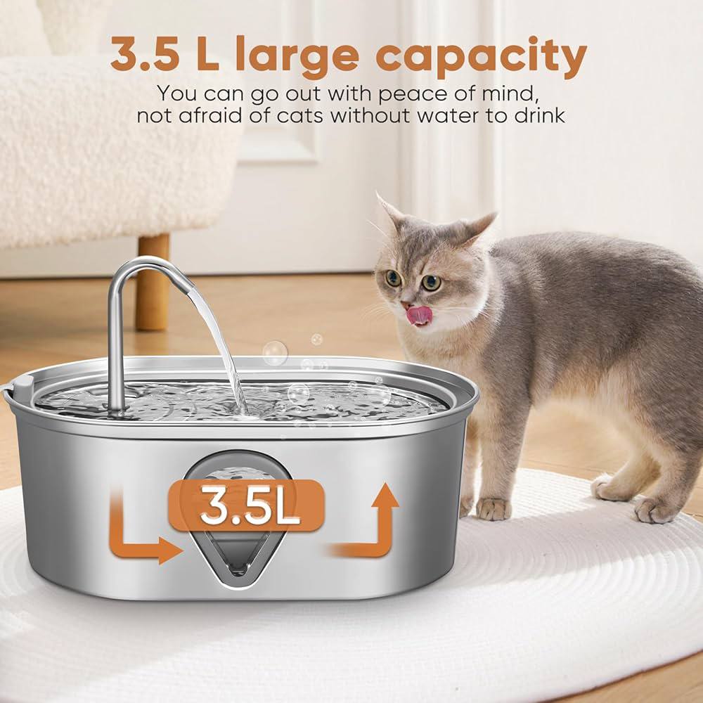 نافورة مياه للقطط، موزع مياه أوتوماتيكي كبير سعة 3.5 لتر من الفولاذ المقاوم للصدأ للحيوانات الأليفة، نافذة مستوى المياه، توفر مياه متدفقة، مضخة فائقة الهدوء، 4 مجموعات من المرشحات البديلة، مع مستشعر USB
