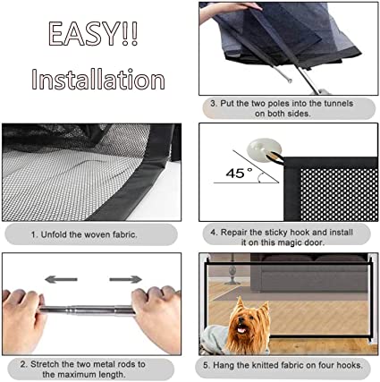 - [ Super Durable Material Made ] This Pet Gate is built with tough, partially see-through woven mesh, easily withstand abuse from small pets claws.