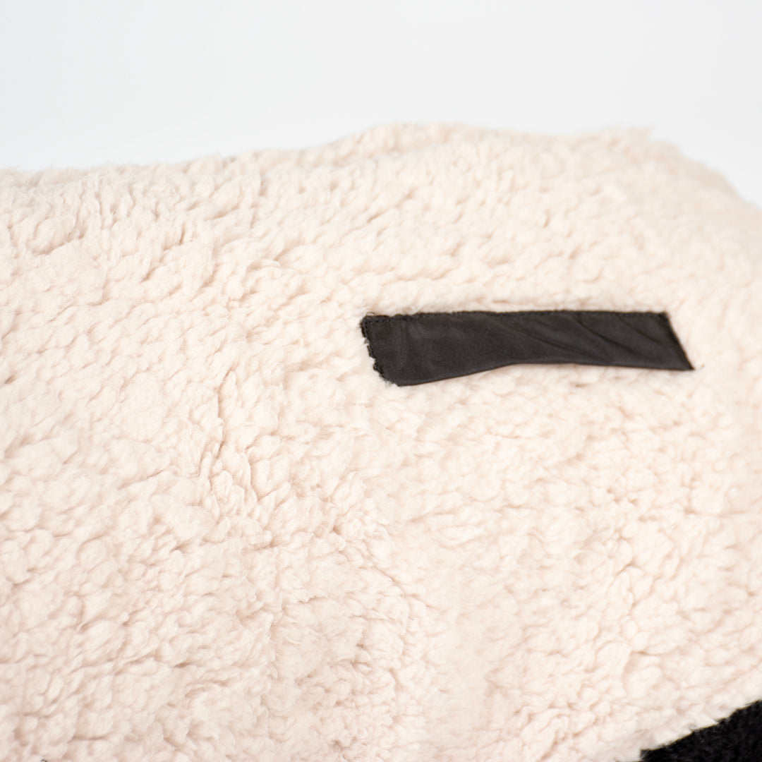 سترة كلب من جلد الغنم باللون الأسود/الأبيض XS