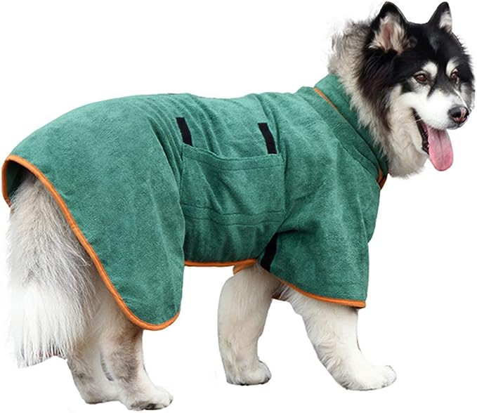 معطف تجفيف للكلاب، منشفة رداء حمام، مادة الألياف الدقيقة سريعة الجفاف، رداء حمام للكلاب فائق الامتصاص، سريع الجفاف للحيوانات الأليفة، يمتص الرطوبة مع طوق وخصر قابل للتعديل