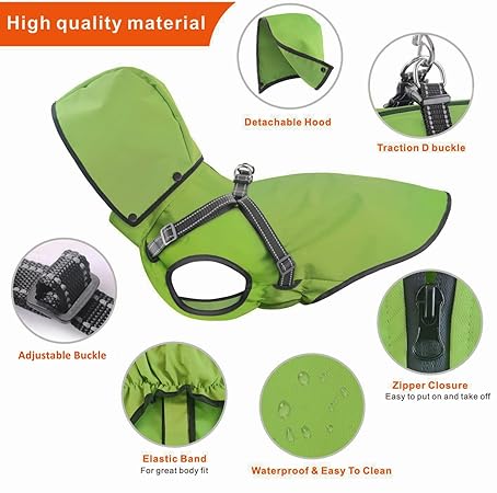 - 【سهل الارتداء】غطاء رأس قابل للفصل وتصميم رقبة ممتدة، يحمي رأس ورقبة الكلب بشكل فعال من المطر والرياح؛ إغلاق بسحاب على الظهر، سهل الارتداء والخلع.
