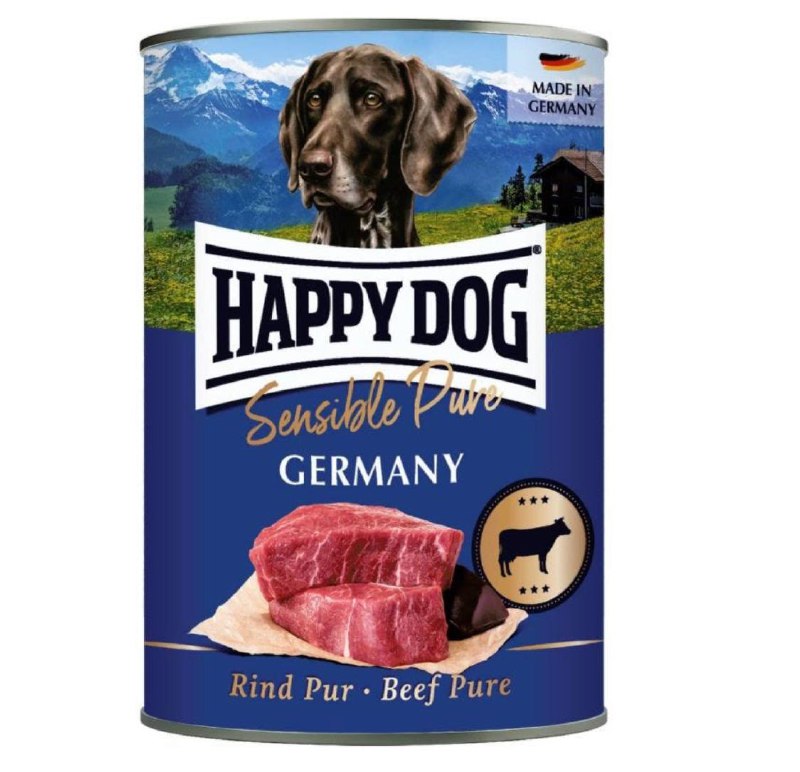 مع طعام الكلاب الرطب من Happy Dog Pure Beef، تدخل الطبيعة إلى وعاء الطعام! يتكون طعام الكلاب الرطب عالي الجودة من 100% من اللحوم والأحشاء الثمينة من لحوم البقر المحلية حصريًا ويحتوي على فيتامينات ومعادن أساسية. يتم تصنيعه بدون فول الصويا أو أي إضافات نباتية أخرى ويحتوي على مصدر واحد فقط من البروتين .